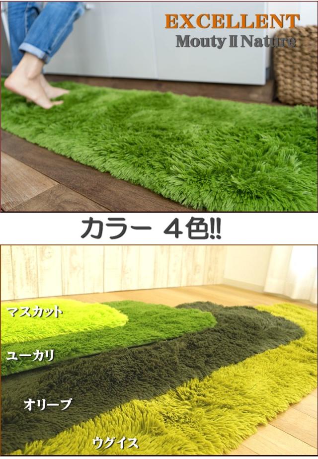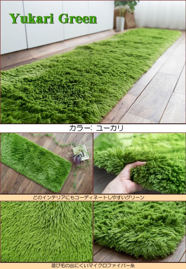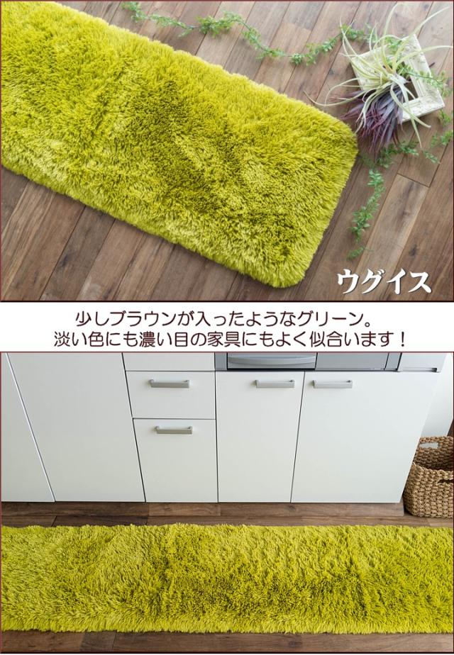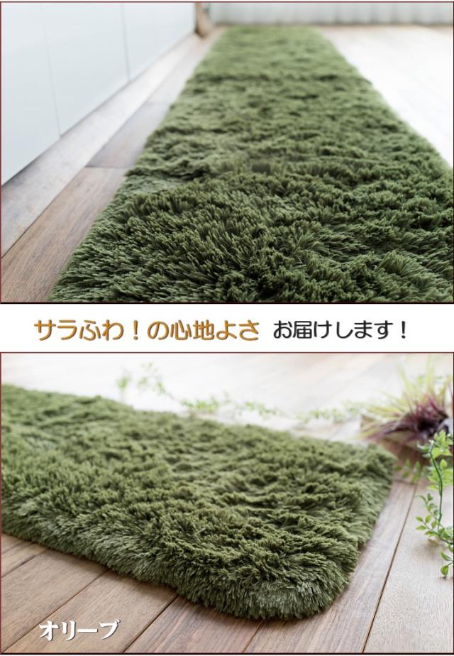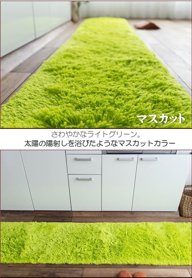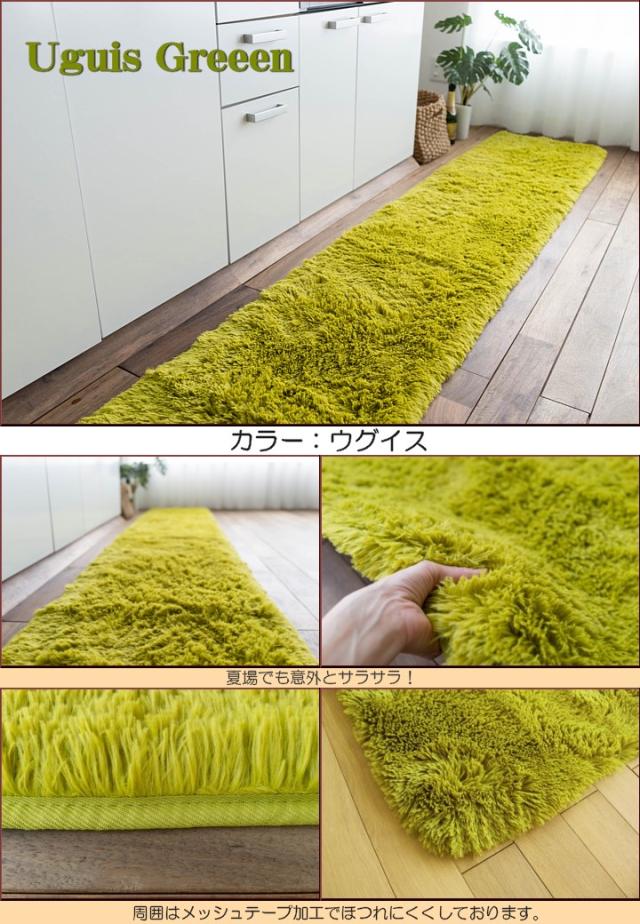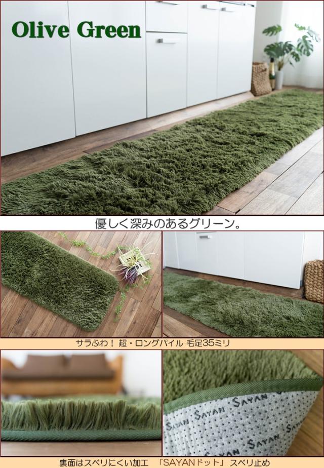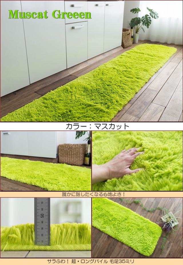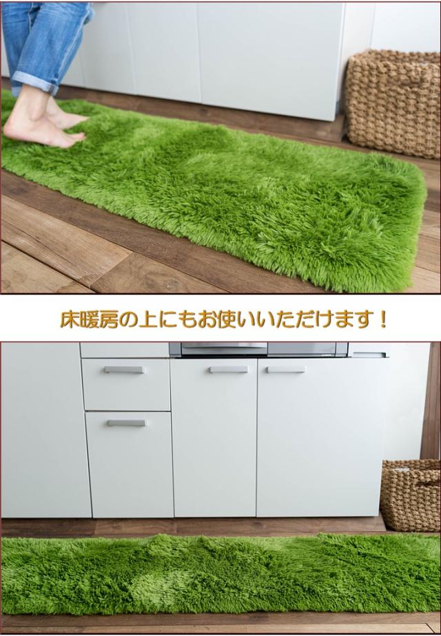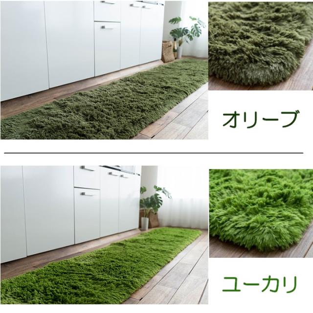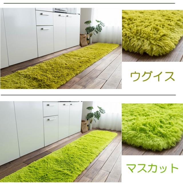 キッチンマット 270 オールシーズン 洗える 45×270 送料無料 サラ!ふわ!毛皮のような肌触り! 毛足35ミリ グリーン シャギーラグ ラグマット 洗濯可 ロングマット 速乾 ムートン 調