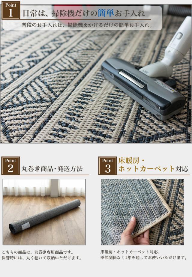 | 【備考】 ※商品によりサイズに多少の誤差があります。 ※カラーはディスプレイ上、実際の色と多少異なる場合がございます。 【こちらの商品の梱包方法】 ・丸巻き ・開梱時、ラグマット、カーペットの毛並みにムラなどがございますが、使用するにつれ、なくなります ・こちらの商品は気になる遊び毛などは出にくいつくりとなっております ・滑りやすい場所でのご使用は市販のカーペット用の滑り止めネットのご使用をお勧めします ・汚れた場合は、カーペットクリーナー、中性洗剤などを薄め固く絞ったタオルなどで拭き取ってください | |