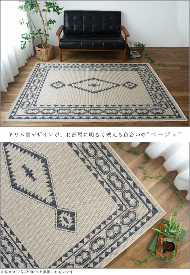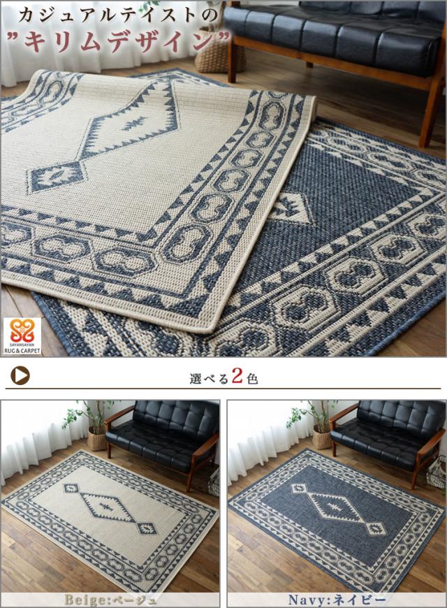 キリム ラグ 約 3 畳 193×250 cm ベージュ ネイビー ブルー ブラウン カーペット おしゃれ ラグカーペット ラグマット アクセントラグ サマーラグ 春 夏 絨毯 じゅうたん シンプル カジュアル ひし形 マット 平織り 薄手 リビング ダイニング 送料無料