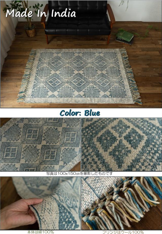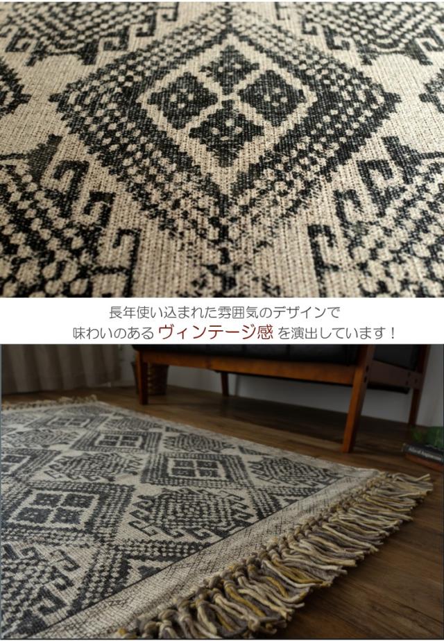 ラグ カーペット 100×150 1畳 弱 洗える オルテガ ヴィンテージ 風 じゅうたん 絨毯 ラグマット おしゃれ 手織り 平織り エスニック kilim かわいい 綿 コットン