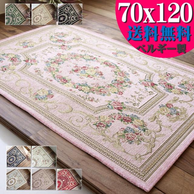 玄関マット 70x120 ゴブラン織 ラグマット ベルギー おしゃれ 風水 北欧 室内 屋内 花柄 送料無料 ゴブラン ラグ ヨーロピアン レッド アイボリー ブラック ブルー グリーン ベルギー絨毯 夏用 にも