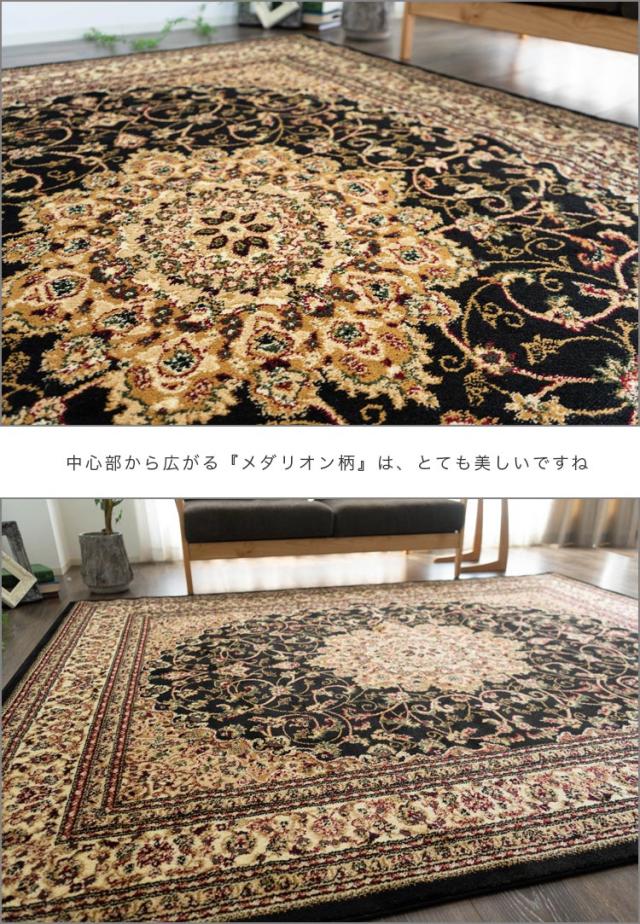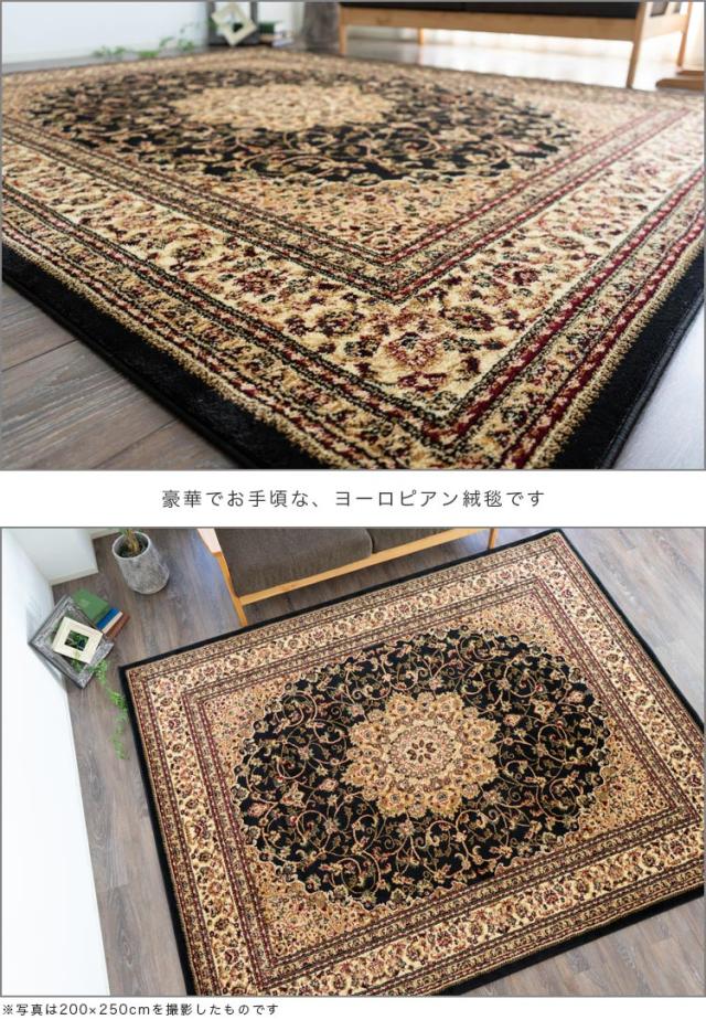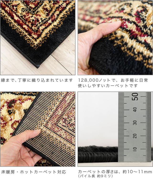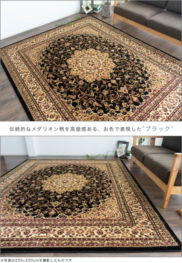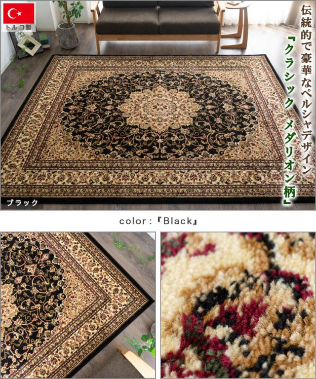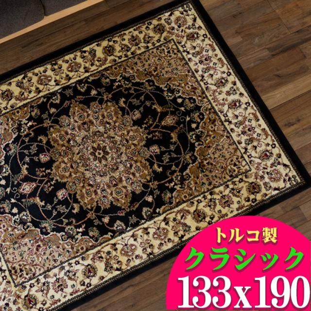 ラグ 約 1.5畳 133×190cm カーペット ブラック 黒 直輸入! トルコ製のお得な 絨毯 じゅうたん 送料無料 ウィルトン織り 1.5帖 ヨーロピアン ラグマット