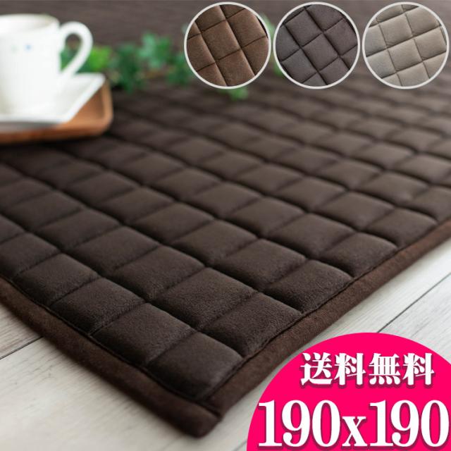 ラグ オールシーズン 洗える 2 畳 190×190 キルト ブラウン ベージュ ラグマット 厚手 北欧 ウレタン カーペット ホットカーペットカバー 絨毯 じゅうたん おしゃれ かわいい 送料無料