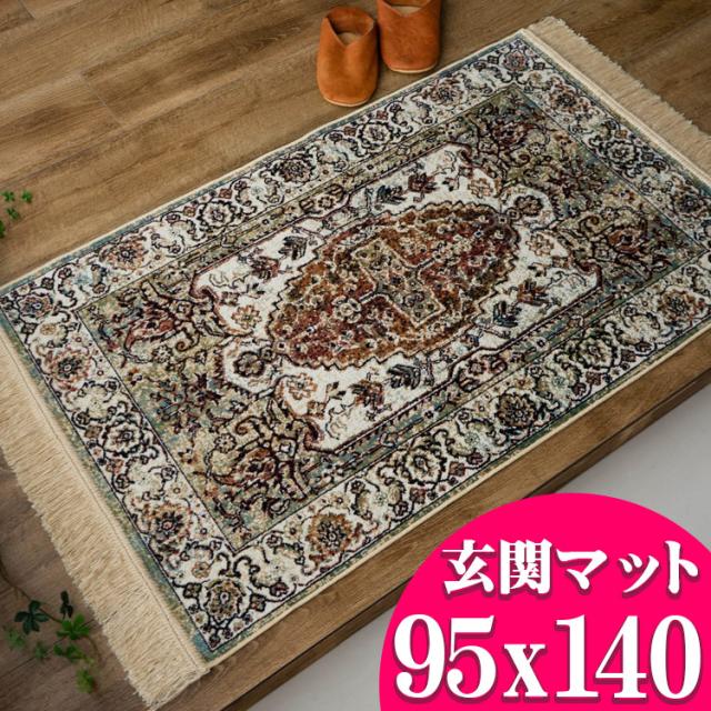 ラグ 95×140 約 1畳 ペルシャ ベージュ おしゃれ シルク タッチ 絨毯 柄 高級 ラグ ヴィンテージ アンティーク ヨーロピアン クラシック モケット織り ラグカーペット 送料無料