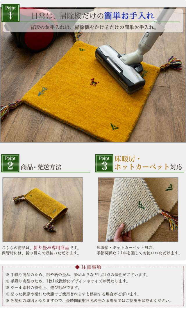 ギャベ ギャッベ 座布団 40×40cm ウール 送料無料 玄関マット ギャベ ギャベ玄関マット ギャッぺ