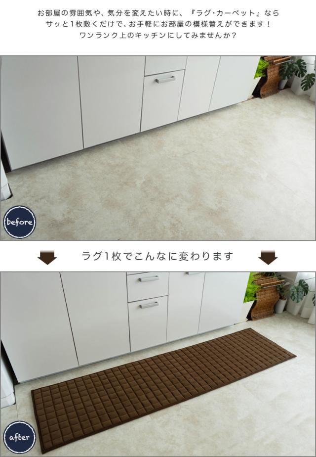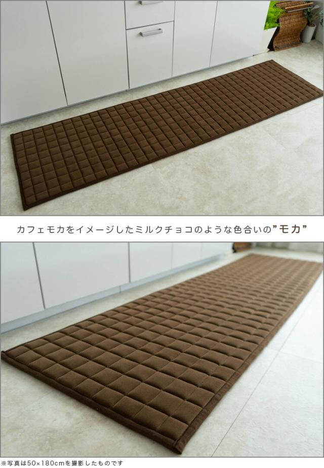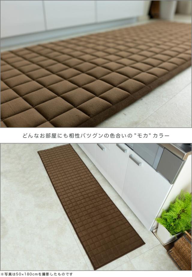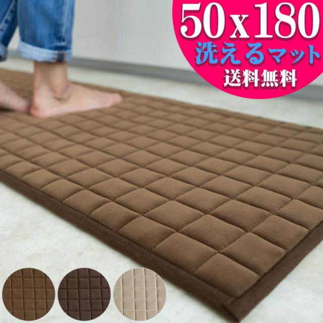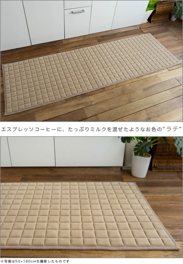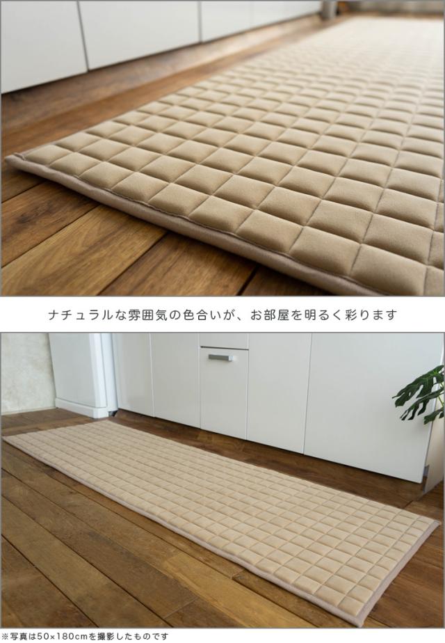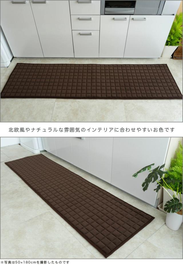 キッチンマット 180 オールシーズン 洗える ロングマット 50×180 キルト ブラウン ベージュ ラグマット 厚手 北欧 ウレタン カーペット 絨毯 じゅうたん アクセントマット おしゃれ かわいい 送料無料