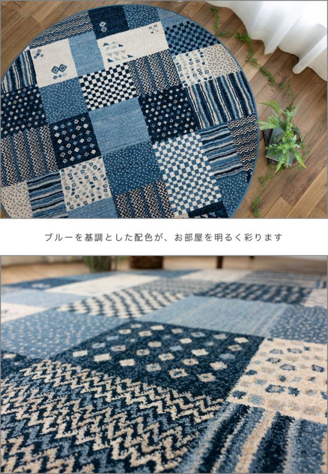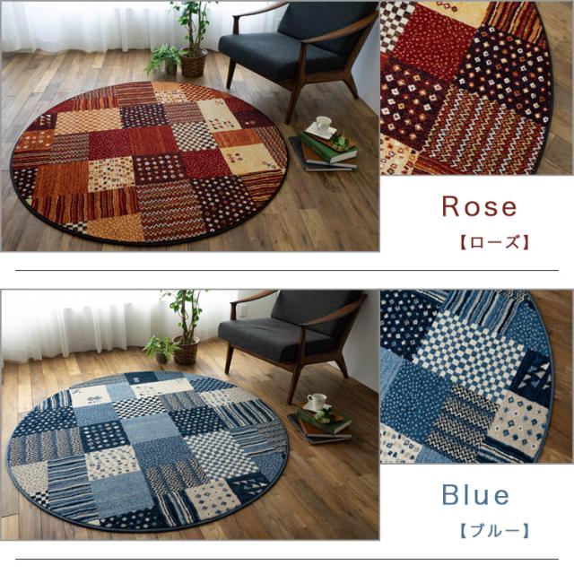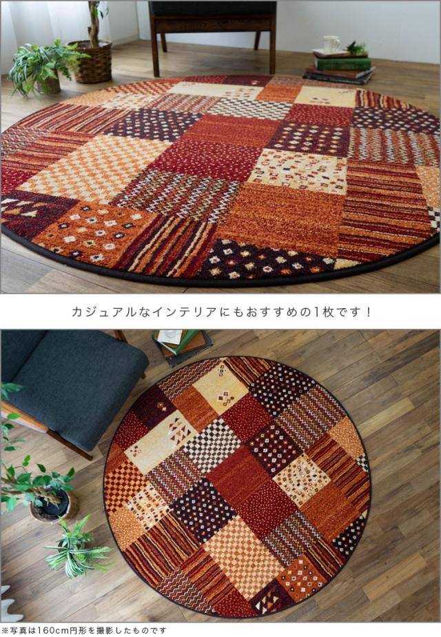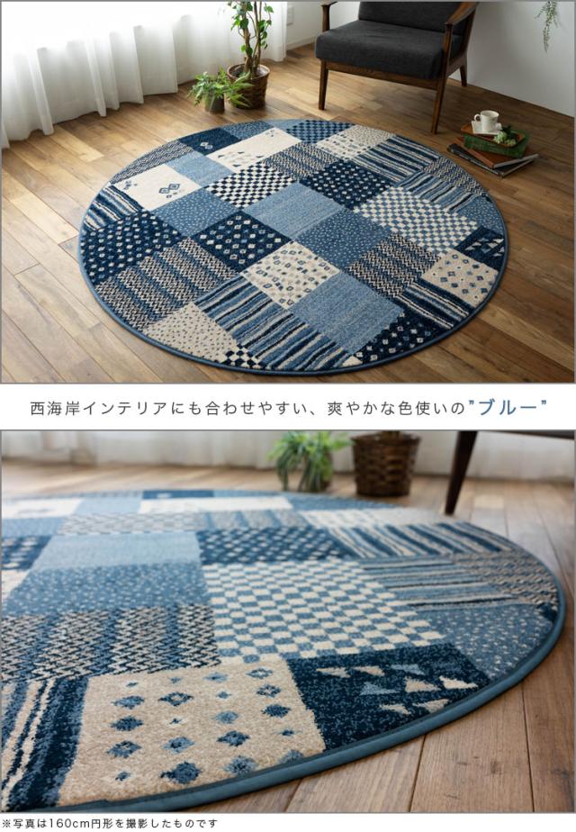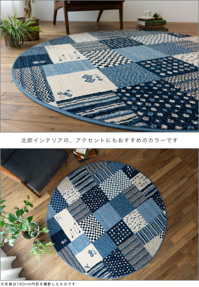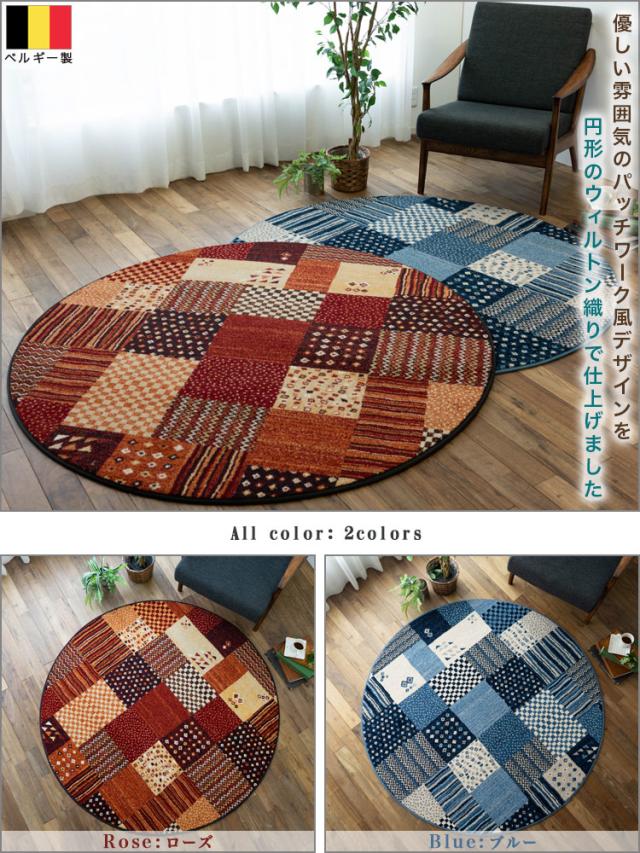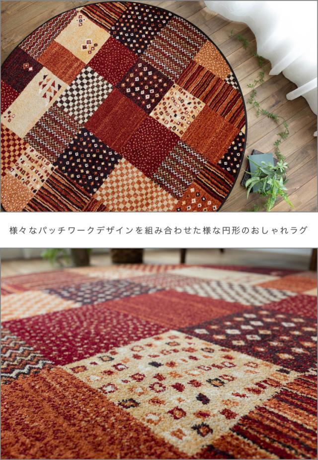 パッチワーク 柄 160cm 円形 ラグ ギャベ 調 ベルギー ラグマット 丸型 絨毯 ヨーロピアン カーペット リビング おしゃれ ウィルトン 折り畳み 送料無料