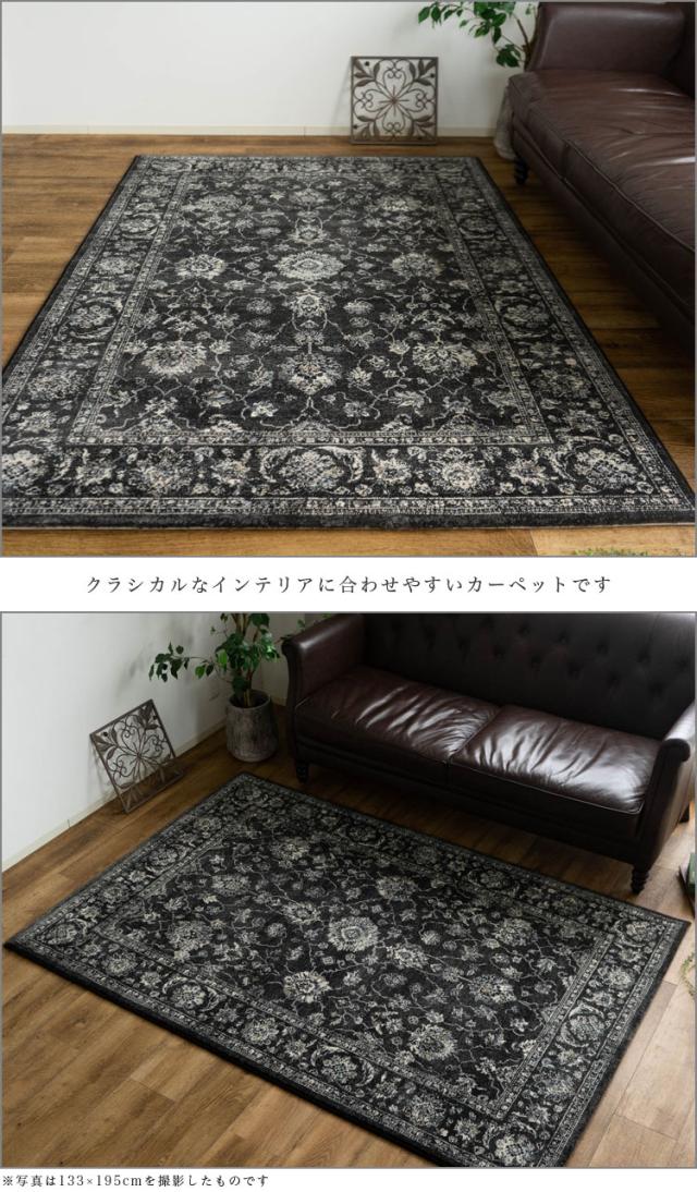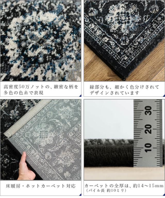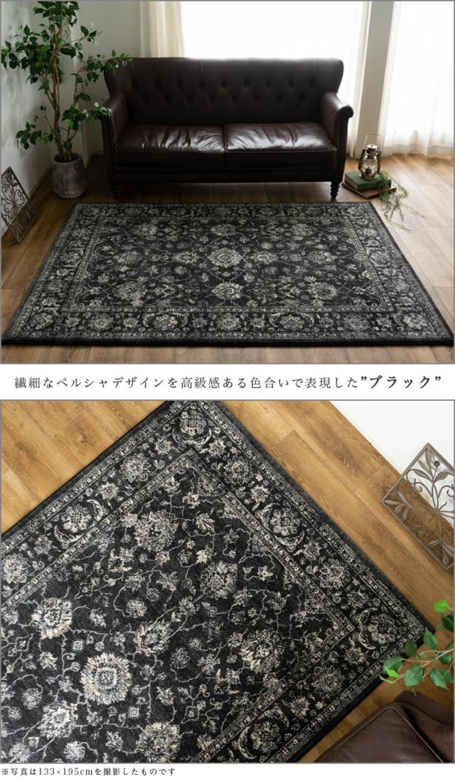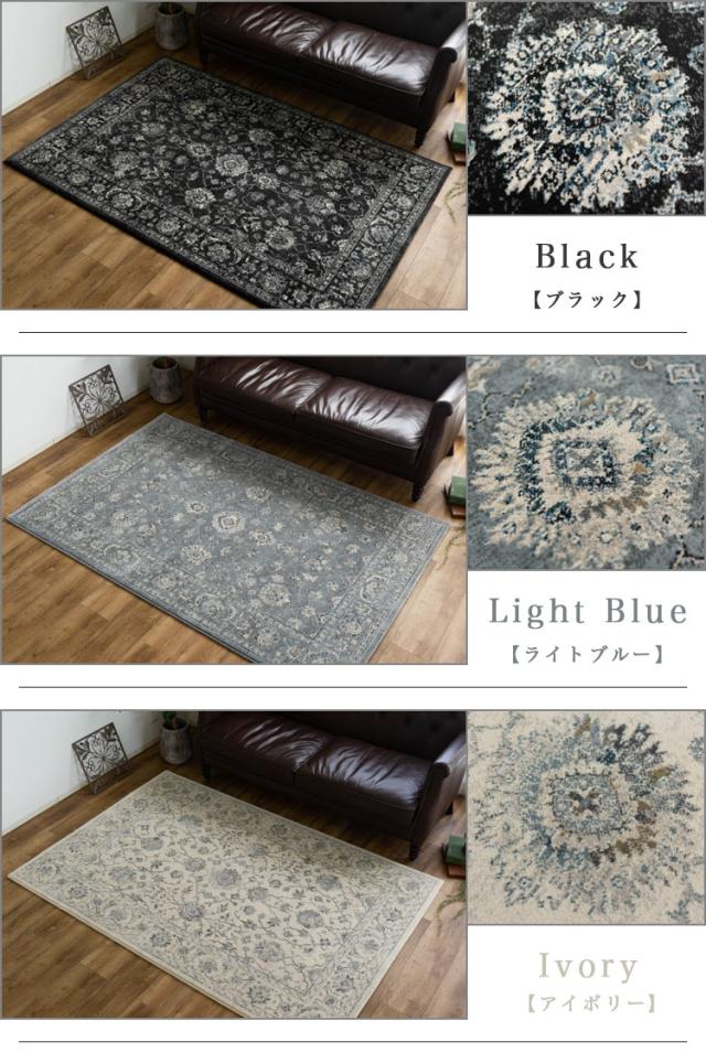 ラグ 1.5畳 これは綺麗! ヨーロピアン 絨毯 カーペット 133x195 ラグマット ペルシャ絨毯 柄 高密度50万ノット! ウィルトン織り 黒 ブルー アイボリー じゅうたん