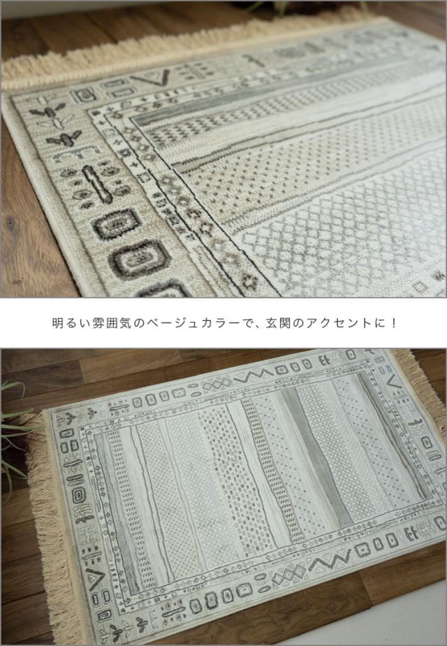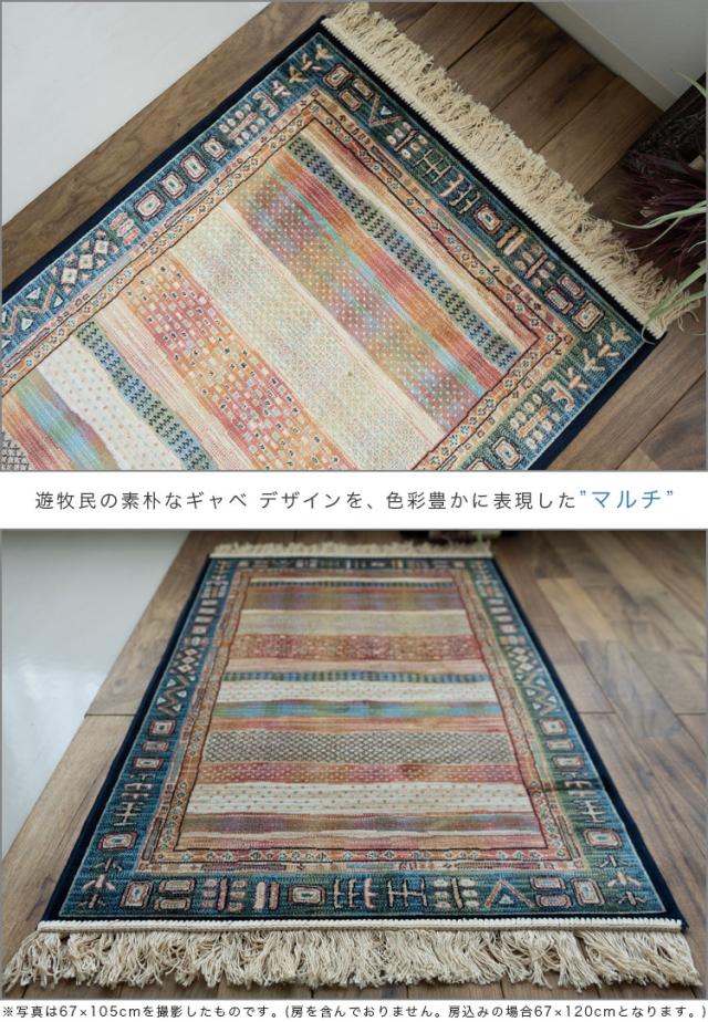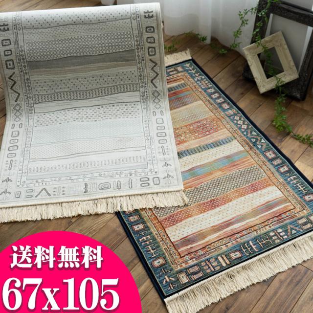 おしゃれ な1枚! ギャベ ギャッベ 柄 玄関マット シルクのような光沢! 67x105cm ベルギー絨毯 風水 ブルー ベージュ 玄関 マット 室内 屋内 送料無料 北欧 ラグマット