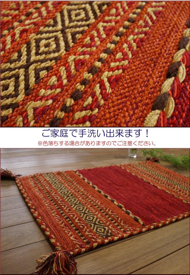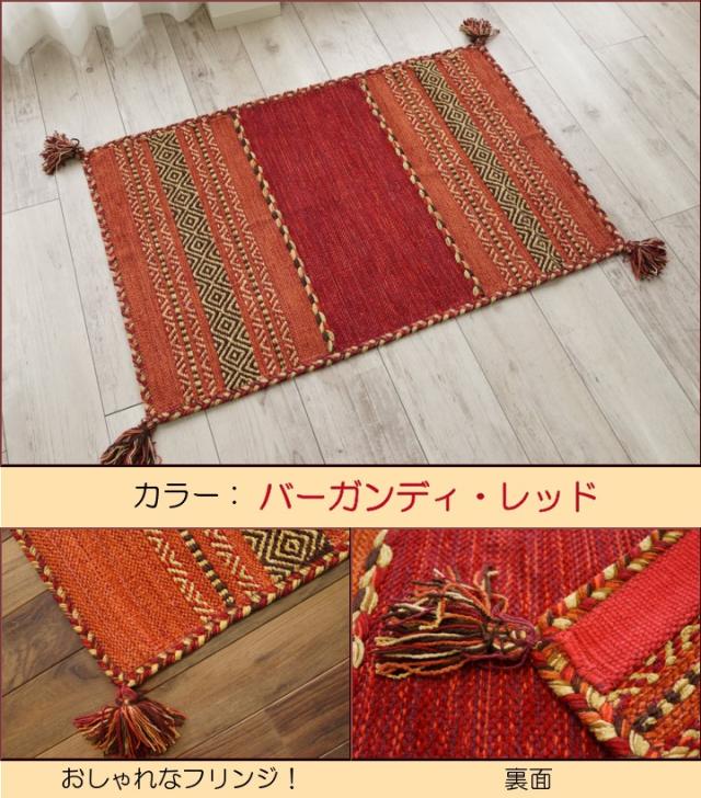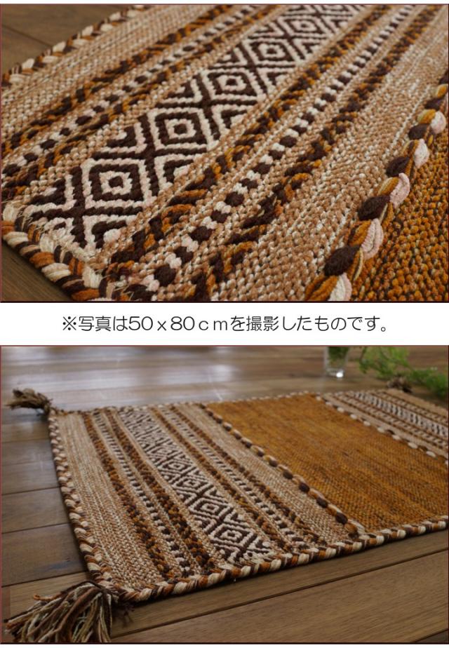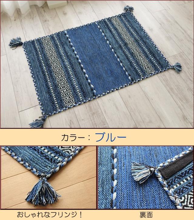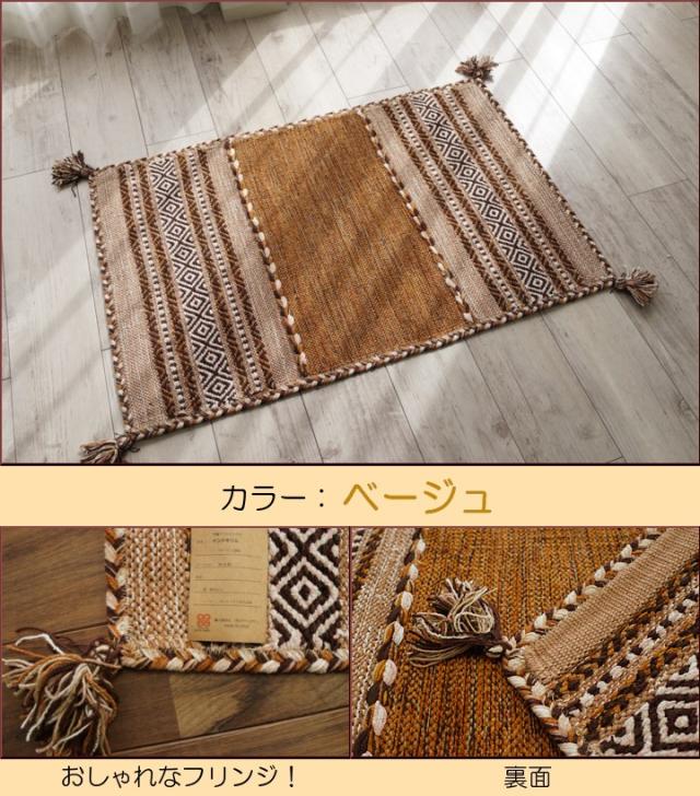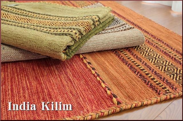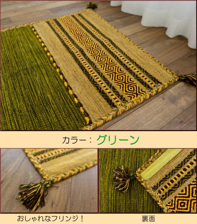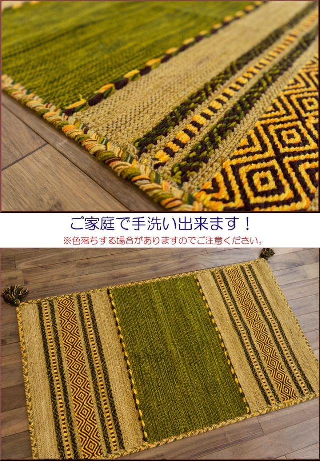玄関マット 120 おしゃれ キリム 室内 屋内 70×120 ラグ ラグマット 手織りインド キリム エスニック kilim 緑 風水 天然素材