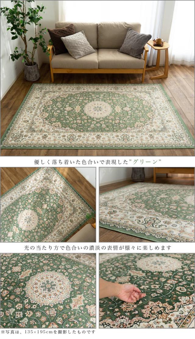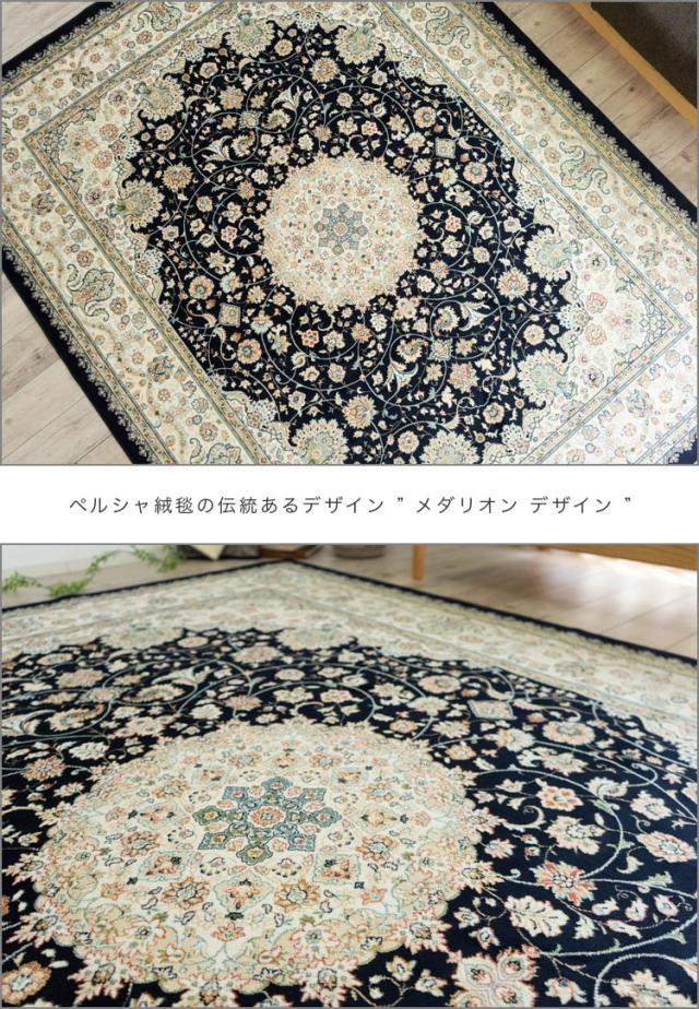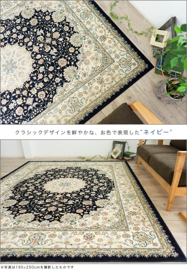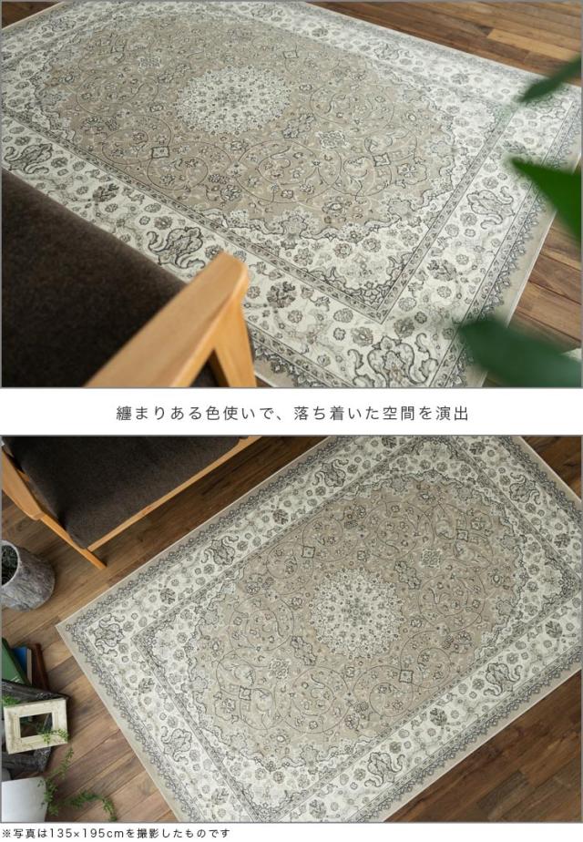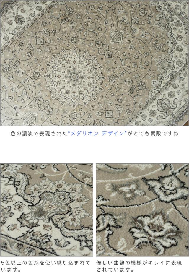 シルクタッチの ラグ 2畳 用 カーペット 195×195 リビング ベルギー絨毯 じゅうたん ライトベージュ ホットカーペット対応 カーペット 送料無料 ペルシャ デザイン