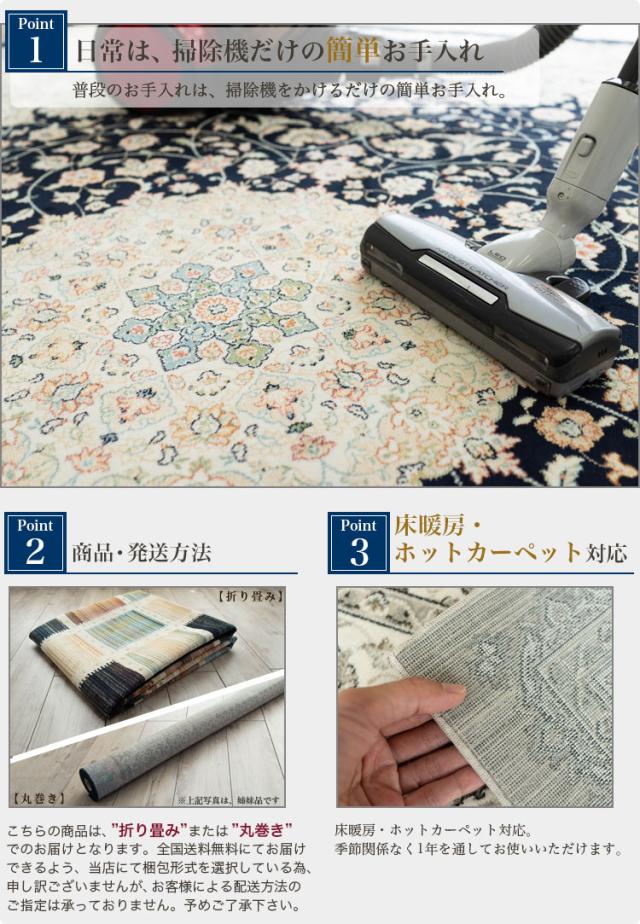 | 【お届け時】 「丸巻き」もしくは「折り畳み」:お客様によるご指定はいただけません。 ※開梱時、ラグマット、カーペットの毛並みにムラなどがございますが、使用するにつれ、なくなります。 ※商品によりサイズに多少の誤差があります。 ※カラーはディスプレイ上、実際の色と多少異なる場合がございます。 ※こちらの商品は遊び毛などが購入当初は出ますが、徐々に少なくなってまいります。 ※滑りやすい場所でのご使用は市販のカーペット用の滑り止めネットのご使用をお勧めします。 ※汚れた場合は、カーペットクリーナー、中性洗剤などを薄め固く絞ったタオルなどで拭き取ってください。 | |