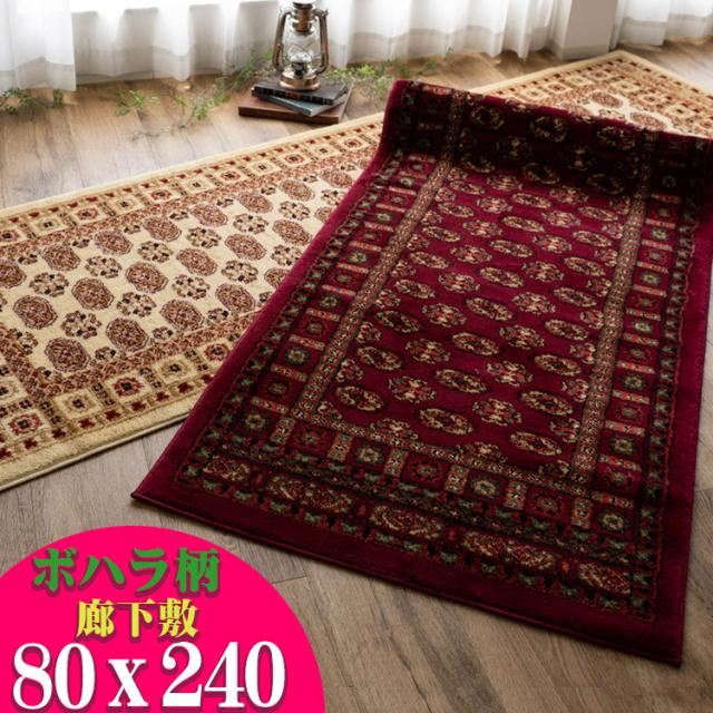 廊下敷き マット 80×240cm ボハラ柄 カーペット ロングカーペット レッド ベージュ トルコ製 ロングマット ロールカーペット 送料無料 クラシック ウィルトン織 高級 廊下 絨毯 じゅうたん