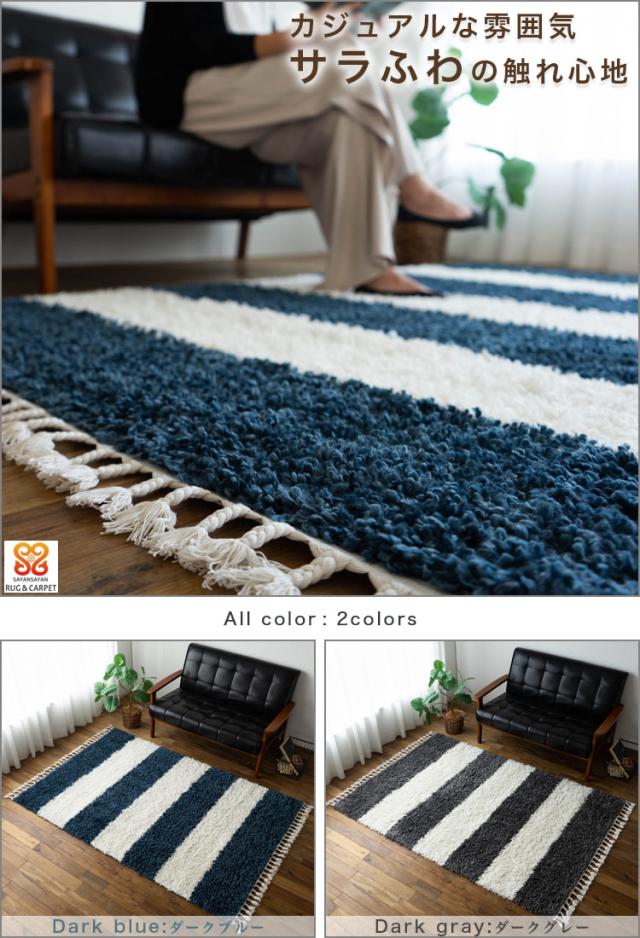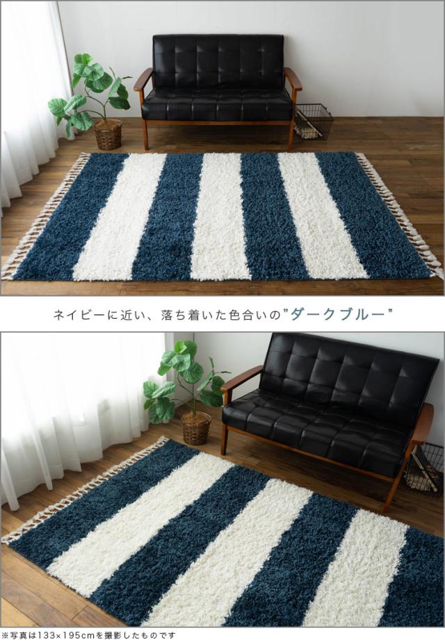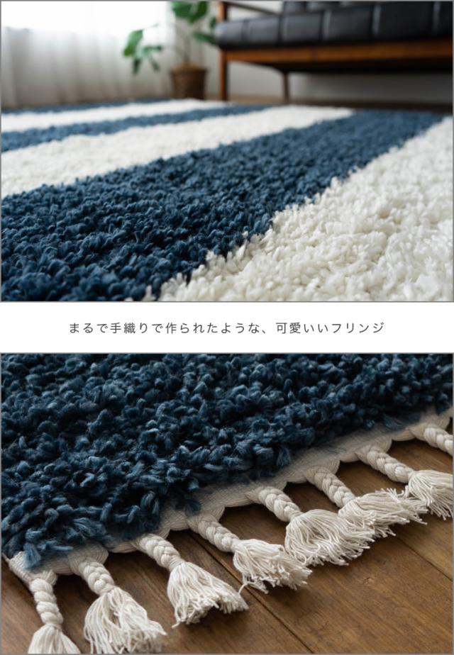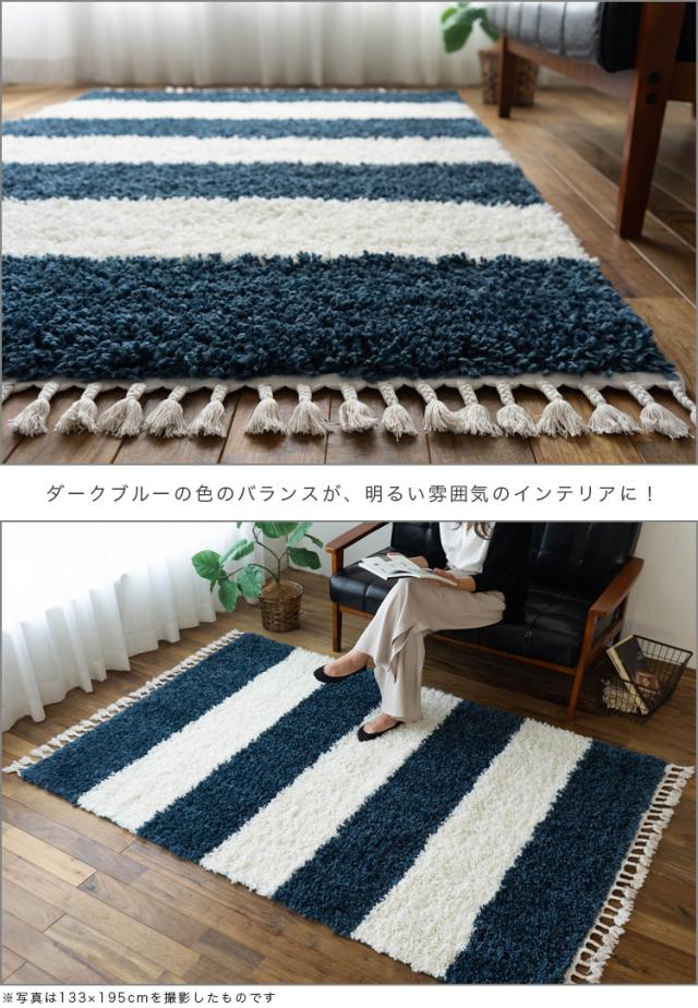 ボーダー 柄 ベニワレン 風 約 1.5畳 133×195 ラグ ウィルトン織 絨毯 おしゃれ ブルー グレー ラグマット 西海岸 ナチュラル 北欧 シンプル アクセントラグ カーペット ストライプ 長方形 リビング