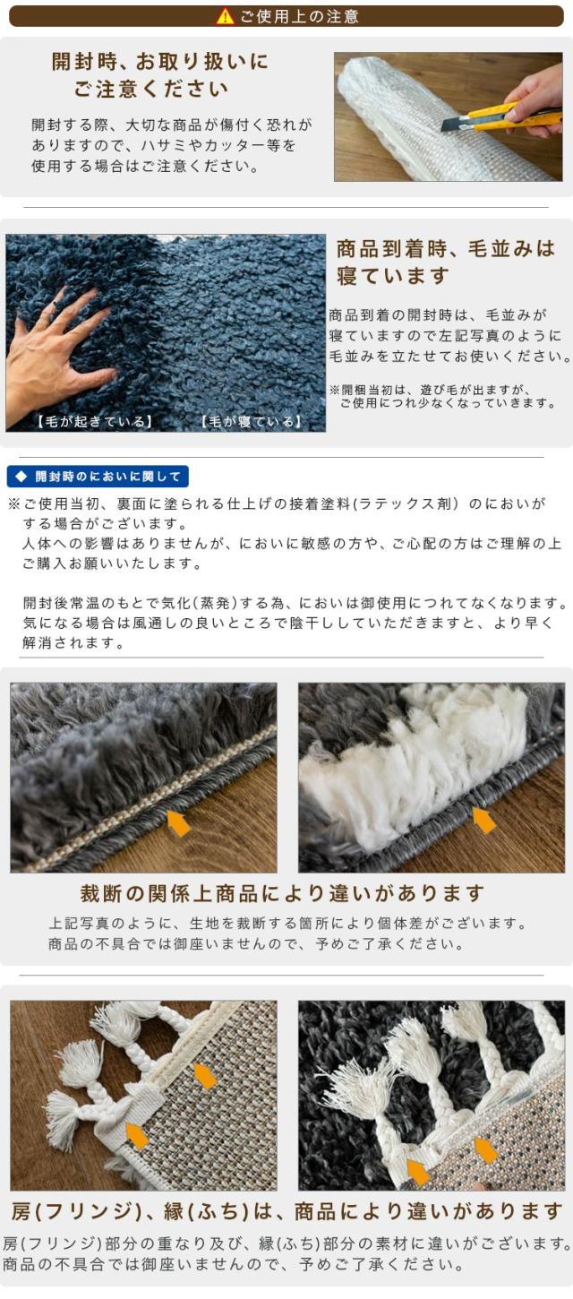 | 【こちらの商品の梱包方法】 ・サイズに応じ「折り畳み」「丸巻き」のどちらかで配送いたします。(お客様によるご指定はいただけません) ※商品は開梱時、ラグマット、カーペットの毛並みにムラなどがございますが、使用するにつれ、なくなります。 ※商品によりサイズに多少の誤差があります。 ※カラーはディスプレイ上、実際の色と多少異なる場合がございます。 ※ウィルトン織りの製法により、使用され、裏面に塗られる仕上げの接着塗料は、ご使用当初、常温のもとで気化( 蒸発 )する、揮発性の匂いがございます。 ※開梱当初は、遊び毛が出ますが、ご使用につれ少なくなっていきます。 ※滑りやすい場所でのご使用は市販のカーペット用の滑り止めネットのご使用をお勧めします。 ※汚れた場合は、カーペットクリーナー、中性洗剤などを薄め固く絞ったタオルなどで拭き取ってください。 | |