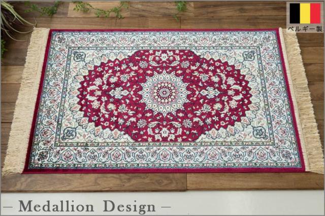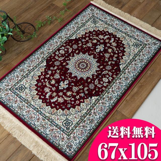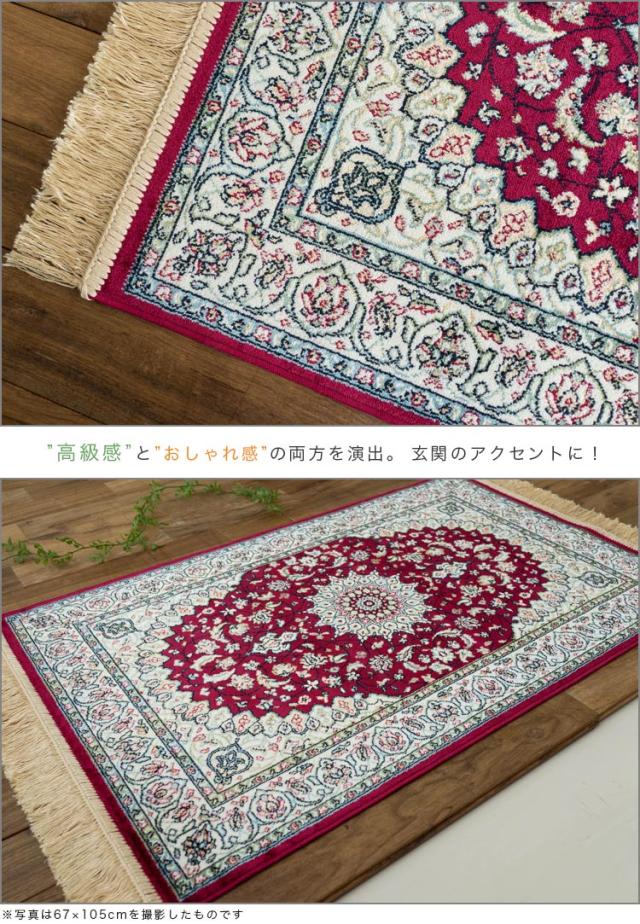 シルクタッチ 玄関マット 高級 感ある雰囲気 室内 ラグマット ペルシャ絨毯 柄 67×105cm 室内 屋内 レッド red 通販 送料無料 ベルギー絨毯 玄関マット 風水