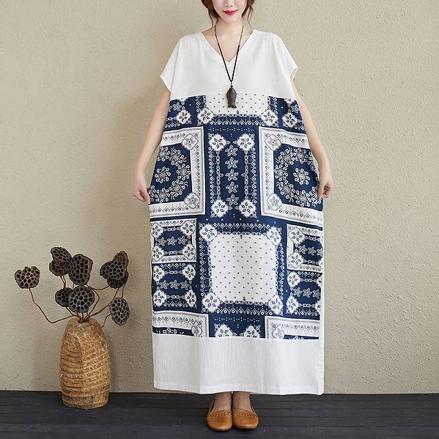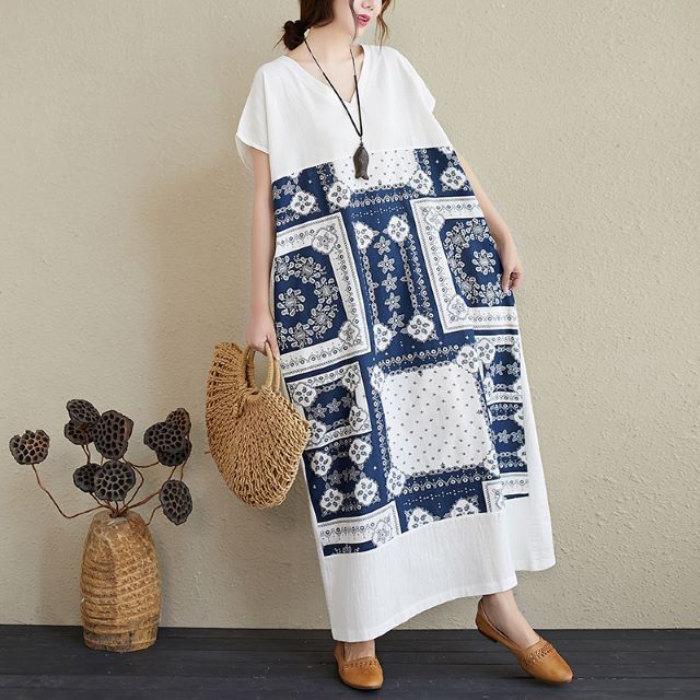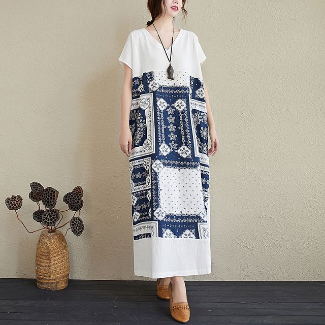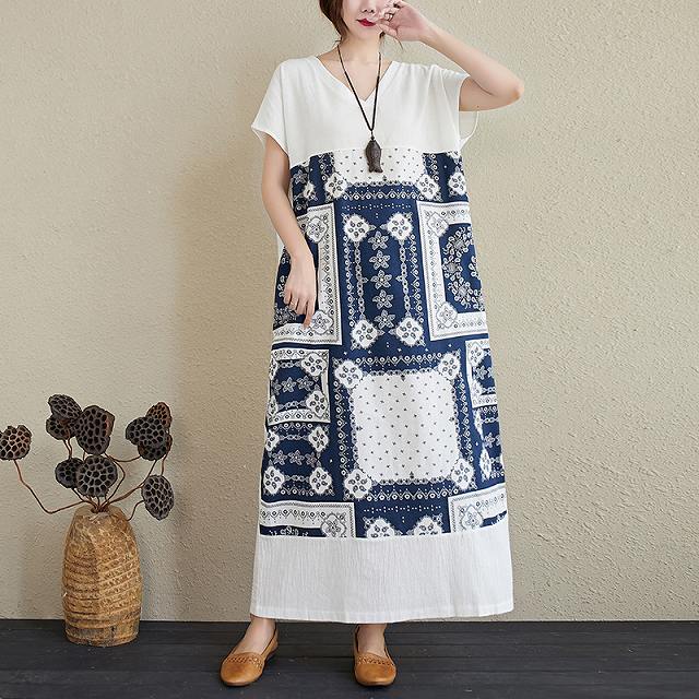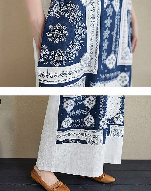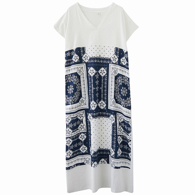 ワンピース レディース ナチュラル ゆったり ロング丈 マキシ丈 カジュアル Vネック ペイズリー バンダナ柄 半袖 Iライン Tシャツワンピ 春 夏 キレナチュ