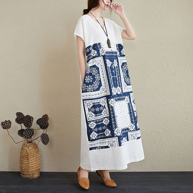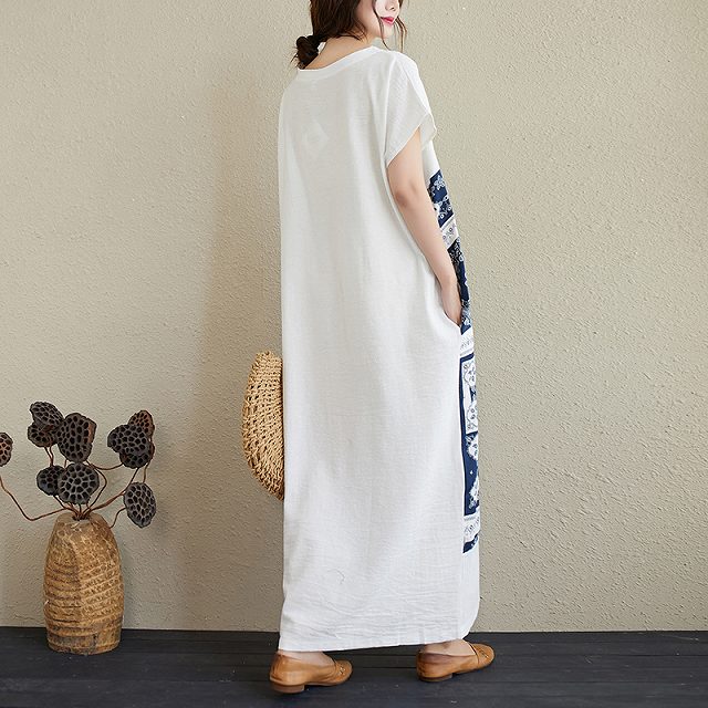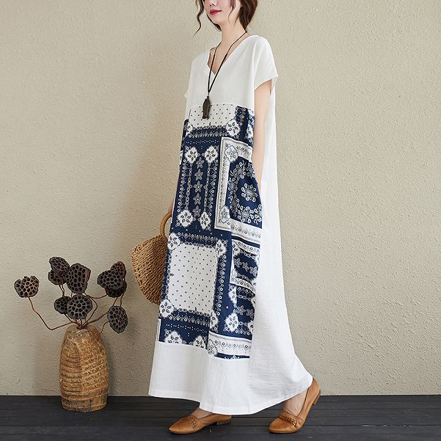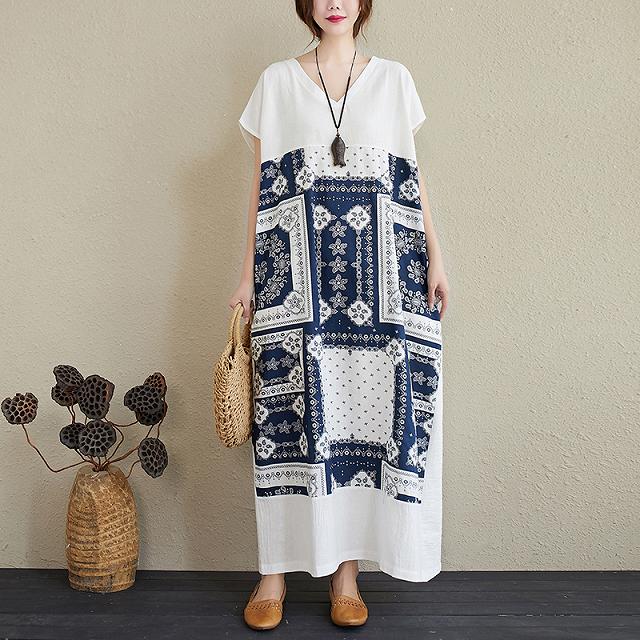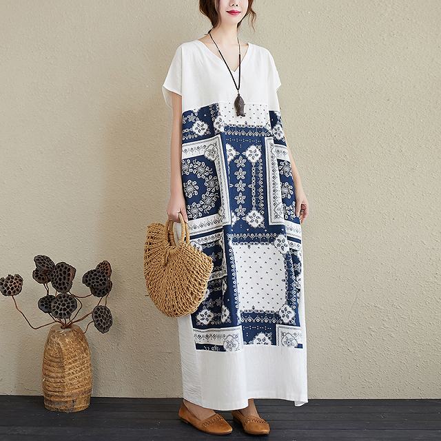 白ワンピにバンダナ柄が目を惹く、マキシワンピース。