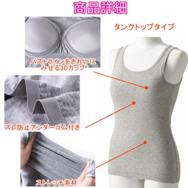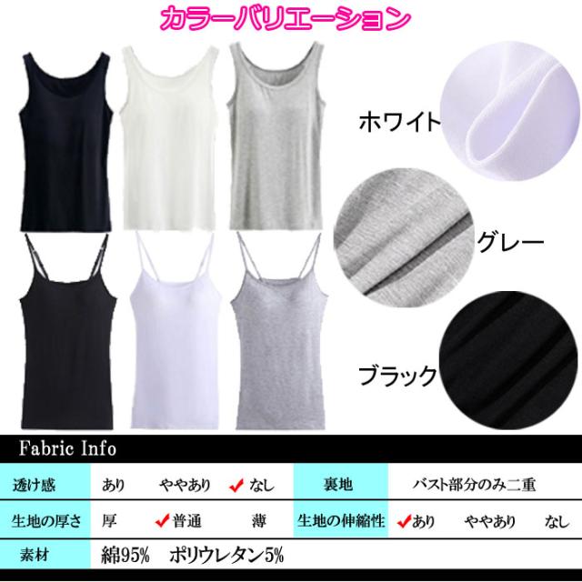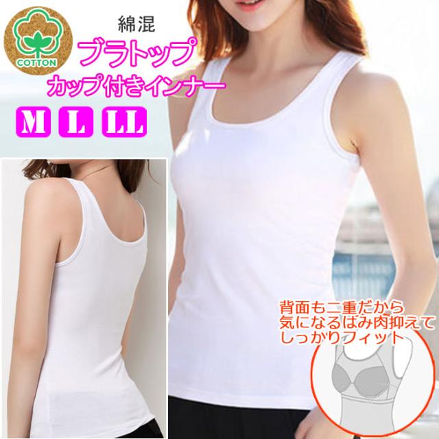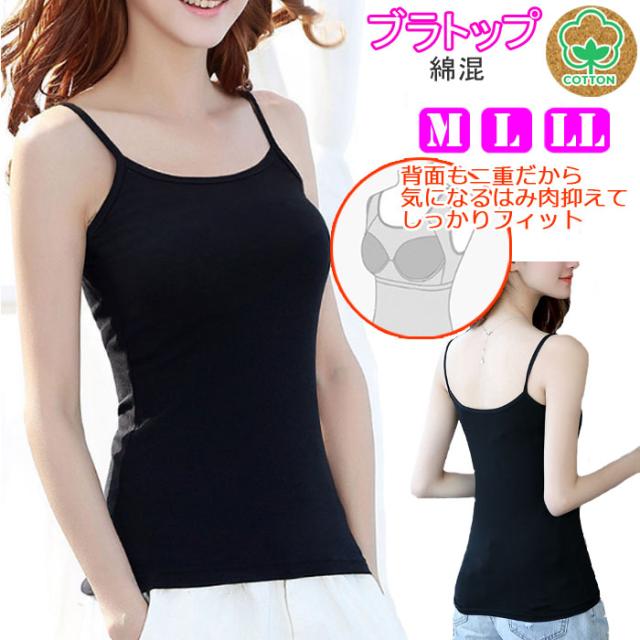 ブラトップ 2枚組 カップ付き 綿混 コットン キャミソール タンクトップ インナー パッド付き 下着 肌着 レディースインナー 汗対策 白 黒 グレー 大きいサイズ M L LL