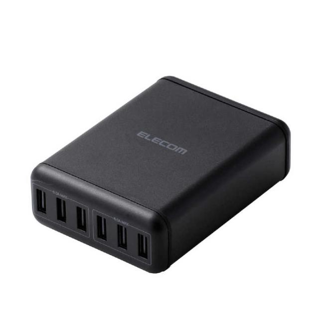 エレコム ELECOM スマートフォン・タブレット用AC充電器 USB-A6ポート(おまかせ充電) 電源ケーブル1.5m MPA-ACD03BK ブラック