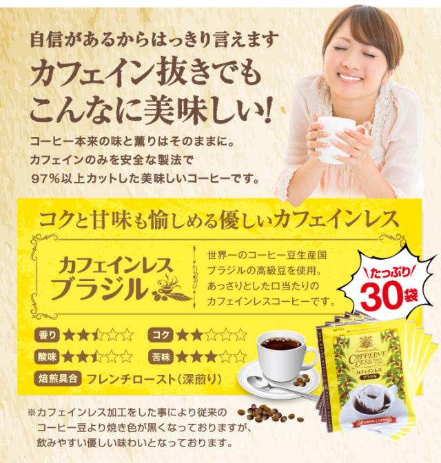 【澤井珈琲】送料無料 カフェインレスブラジル ドリップバッグコーヒー30袋入り福袋 デカフェ