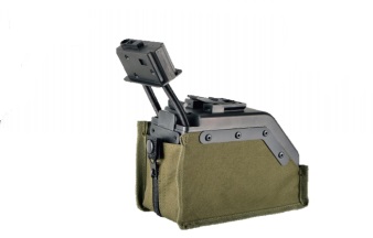 S&Tのミニミmk46本体に付属する電動BOXマガジンで2000連でOD色カバーは付いた電池がパワーソース。