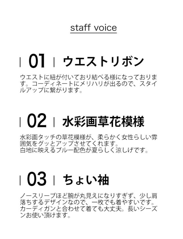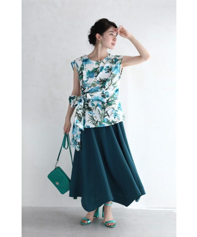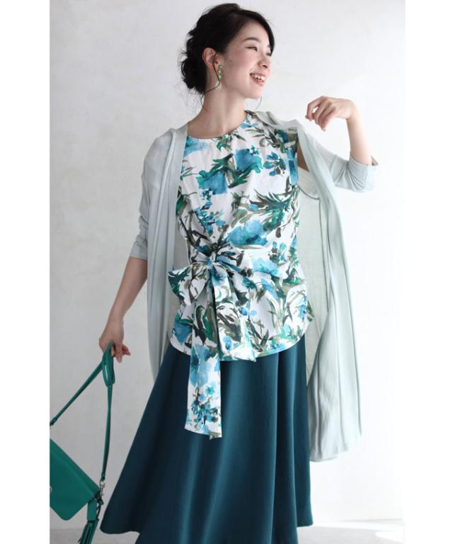 水彩画タッチの草花模様が、柔らかく女性らしい雰囲気をグッとアップさせてくれます。
