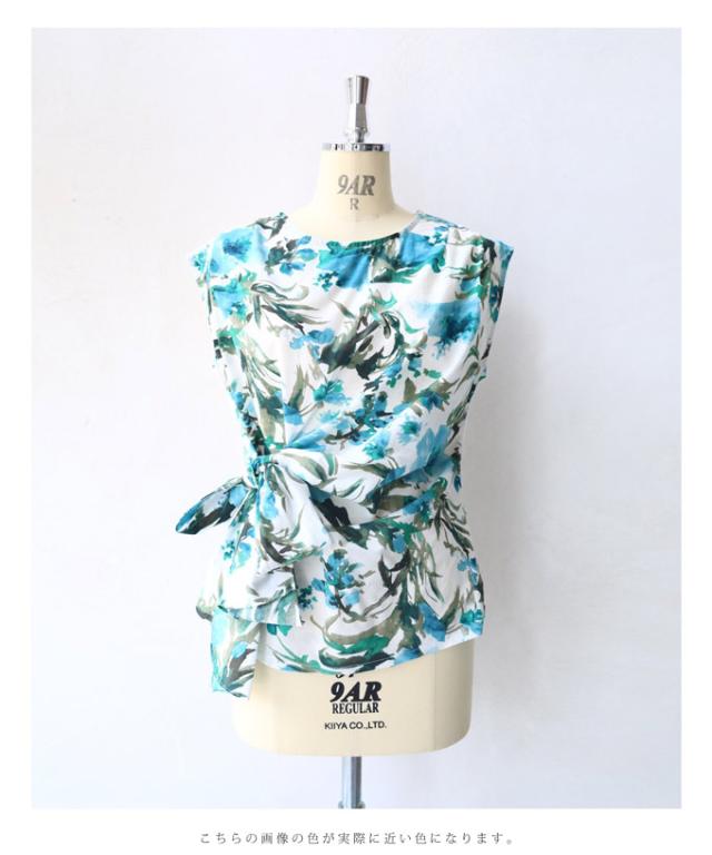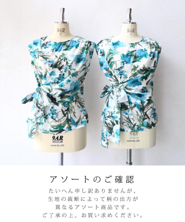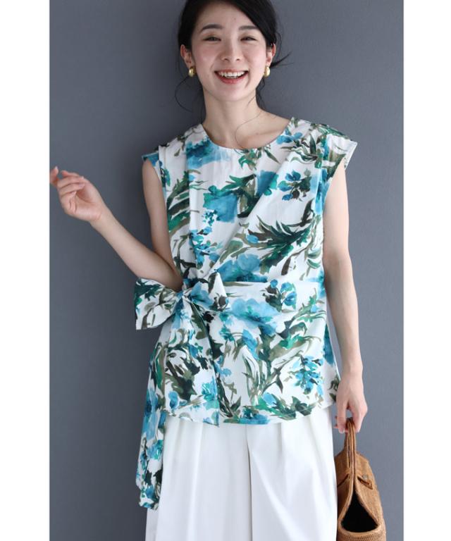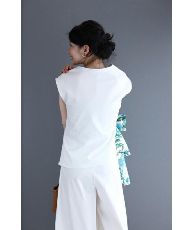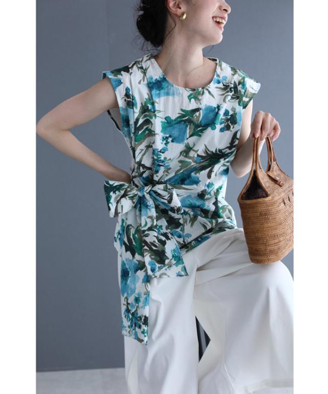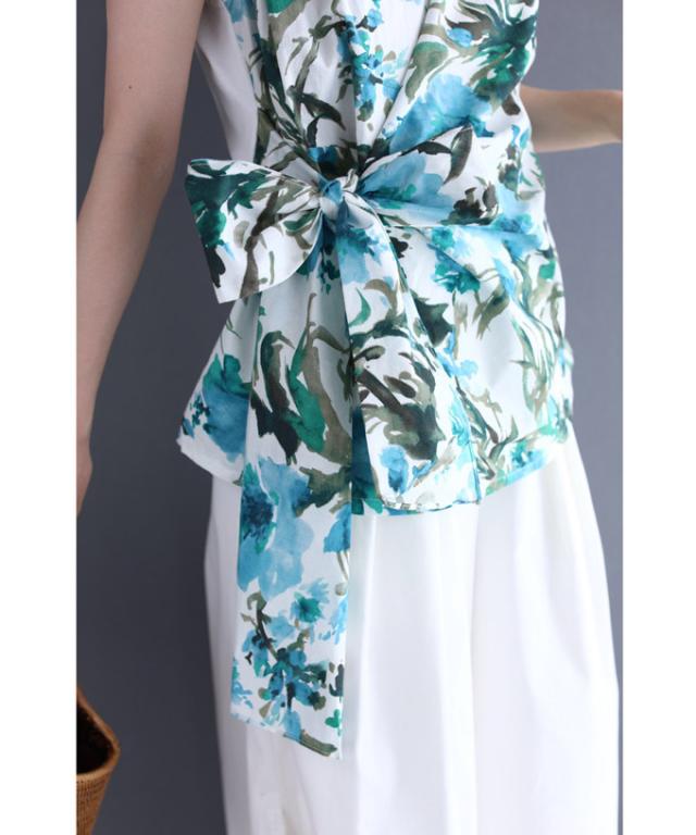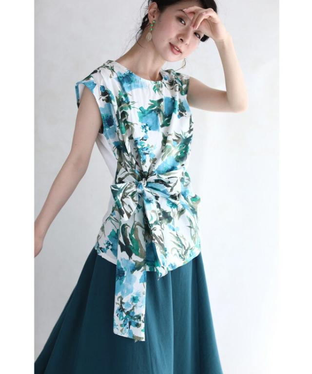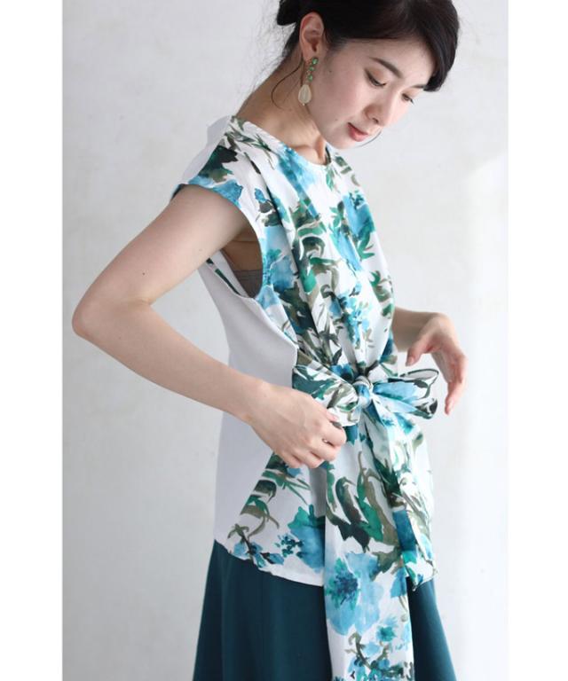 【閉店SALE】 (S-L)リボン を結ぶ水彩画 カットソー トップス 半袖 フレンチスリープ wk00193 cawaii レディース 半袖 Tシャツ クルーネック 花柄 涼しい 綿 夏 体型カバー フレンチスリーブ ドルマン ゆるシルエット 50代 60代 40代 母の日