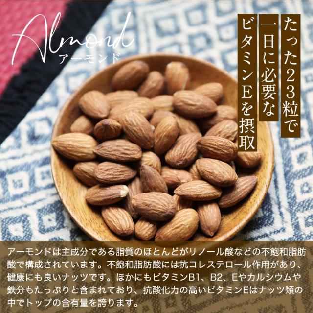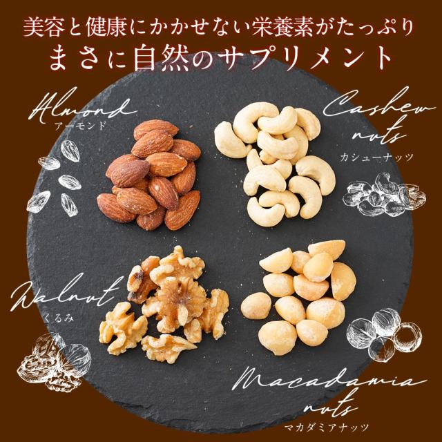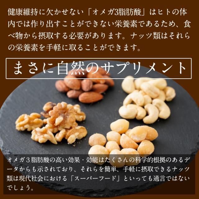 素焼きアーモンドとクルミ、マカダミアナッツ、カシューナッツをオリジナルブレンド。
