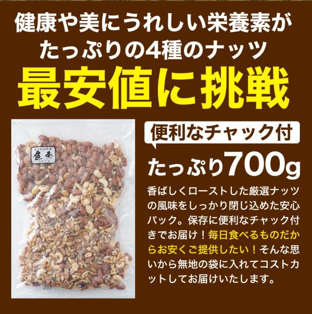 無添加 無塩 素焼き 4種のミックスナッツ 700g 訳あり 送料無料 アーモンド くるみ マカダミアナッツ カシューナッツ 保存食 母の日 父の日