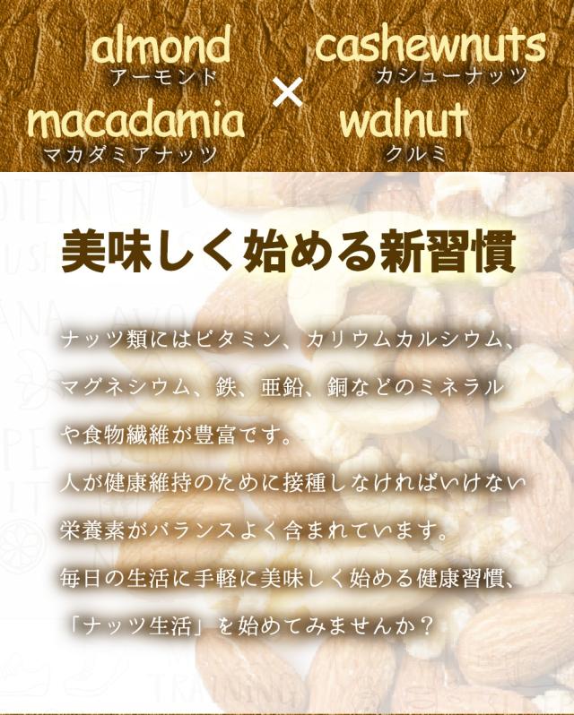 素焼きアーモンドとクルミ、カシューナッツをオリジナルブレンド。