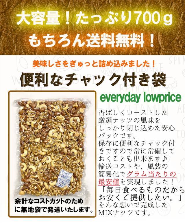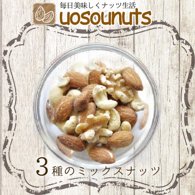 魚奏 無添加 無塩 素焼き 3種のミックスナッツ アーモンド くるみ カシューナッツ 700g 訳あり 送料無料 家飲み 保存食 メール便 母の日 父の日