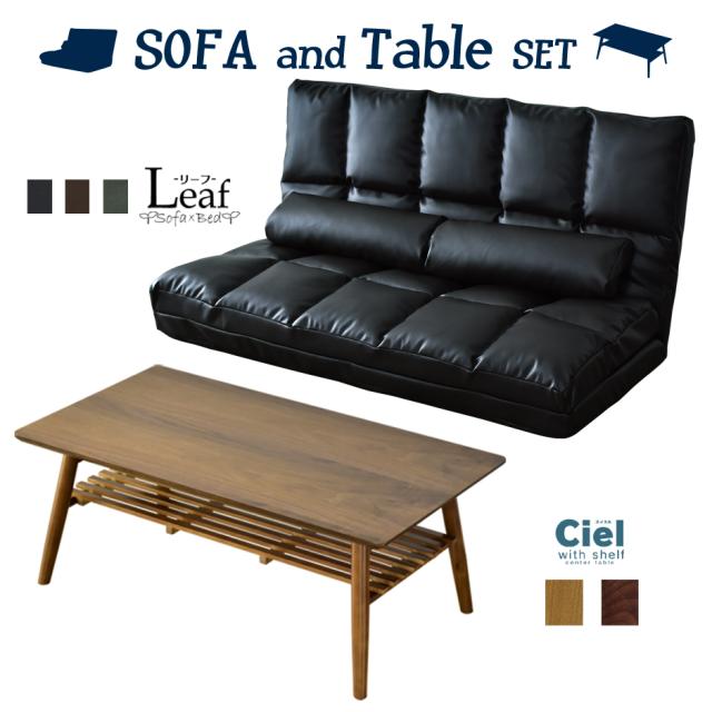ソファー 2人掛け ローソファ フロアソファ ソファベッド リクライニングソファー センターテーブル ローテーブル 棚付き 西海岸 折りたたみ リーフSD PVC スィエル棚付き