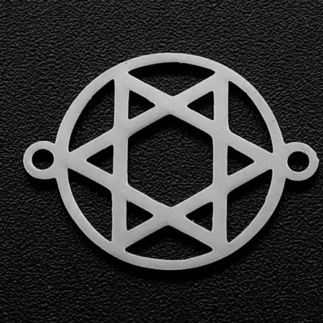 丸型のフレームに六芒星(ダビデスター)をデザインした両端に2個の穴をセットしたステンレス製のDIY用コネクターパーツ。