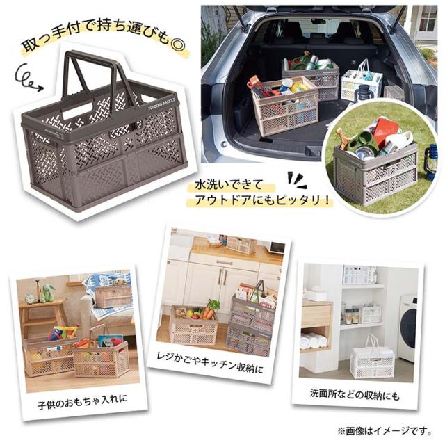 ハンドル付で持ち運びやすい!折りたたみバスケット