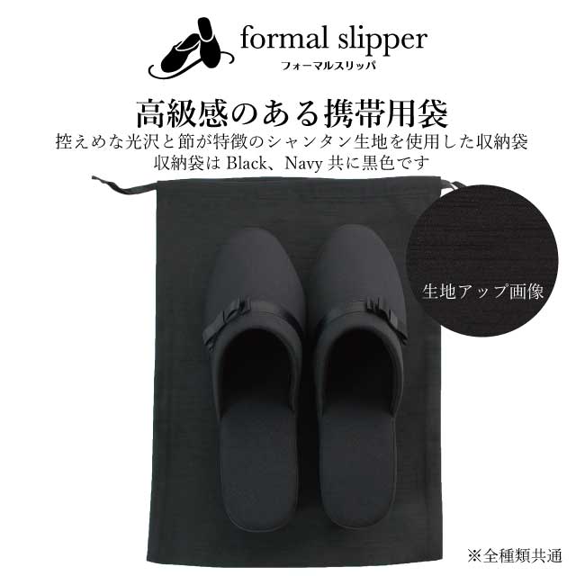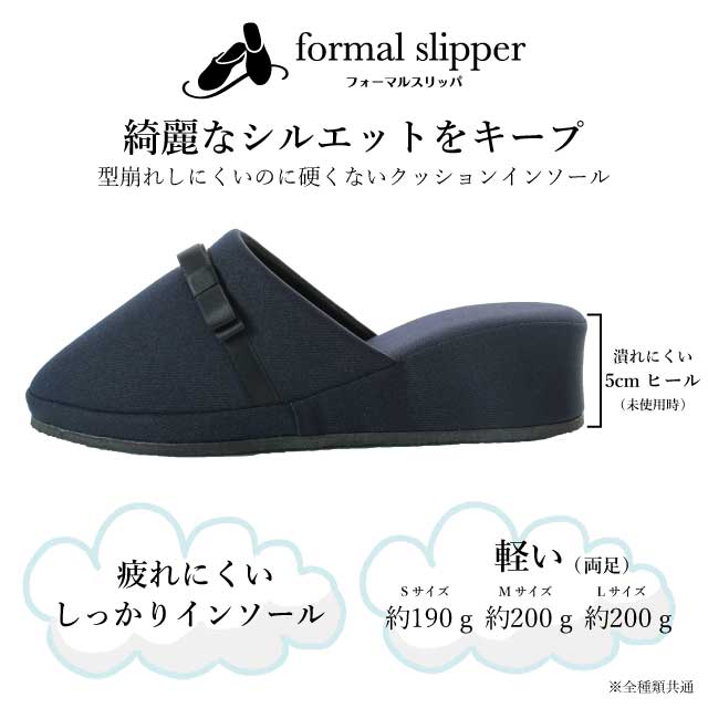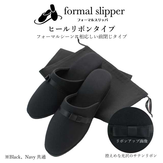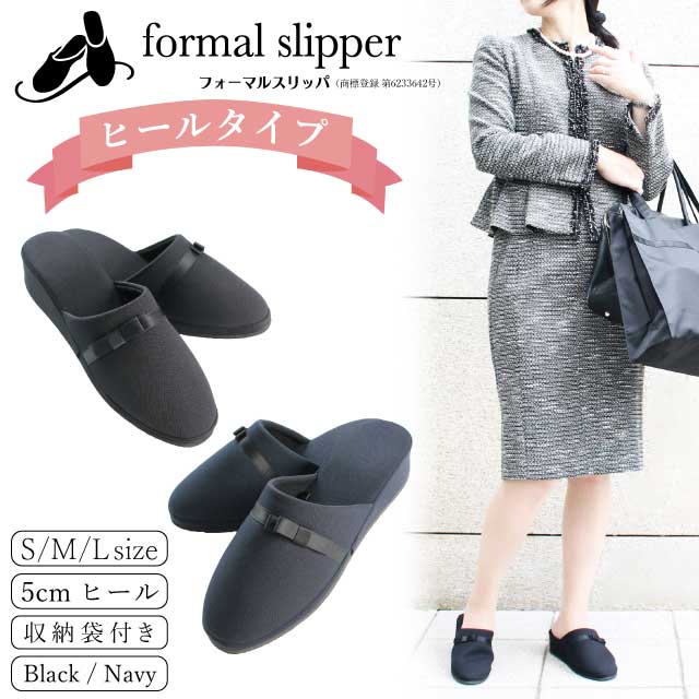 スリッパ 学校 入学式 卒業式 受験 ヒール フォーマルスリッパ お母様用 前閉じ5センチ ヒールスリッパ(S/M/Lサイズ)(Black/Navy) 袋付き【携帯スリッパ】
