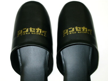 ・使用スリッパは、ブラックです。 ・字体 お客様からいただいたマーク ・字の色 金 ・アーチ状に印刷 |