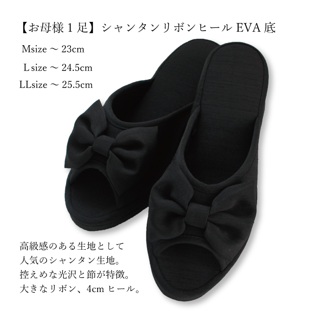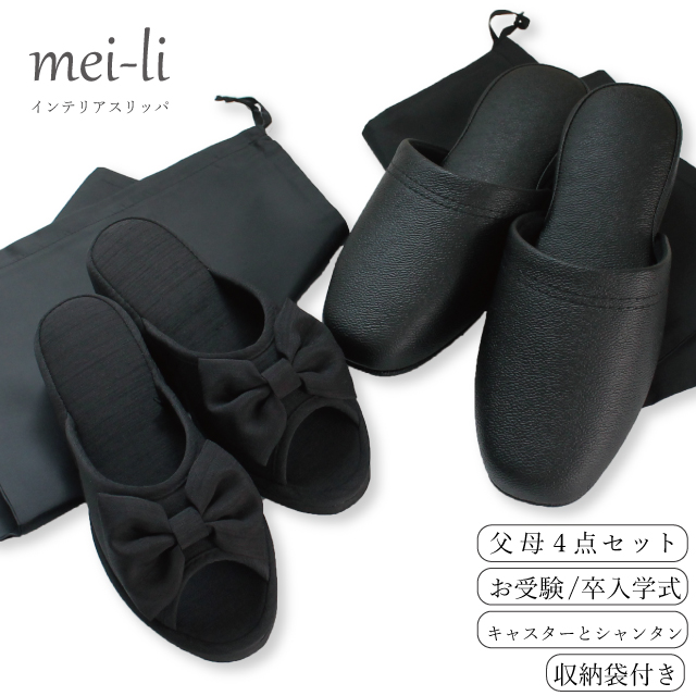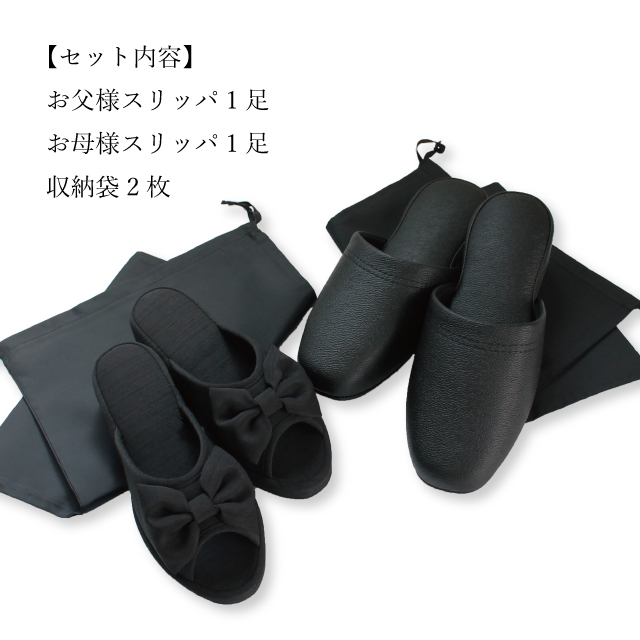 スリッパ 入学式 卒業式 メンズ レディース お父様お母様用スリッパ4点セット お父様用高級PVCスリッパキャスター(M/Lサイズ) お母様用NEWシャンタンリボン4cmヒール(M/L/LLサイズ) スリッパ2足と収納袋2枚 おしゃれ フォーマル