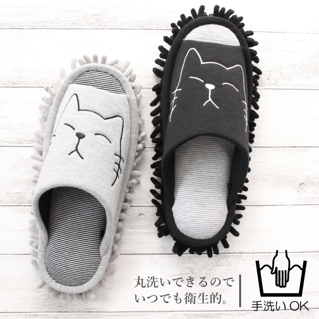 モップスリッパ アニマル 洗える 猫スリッパ 猫グッズ お掃除スリッパ 便利 おうち 猫もっぷスリッパ おそうじくん 送料無料 1足販売