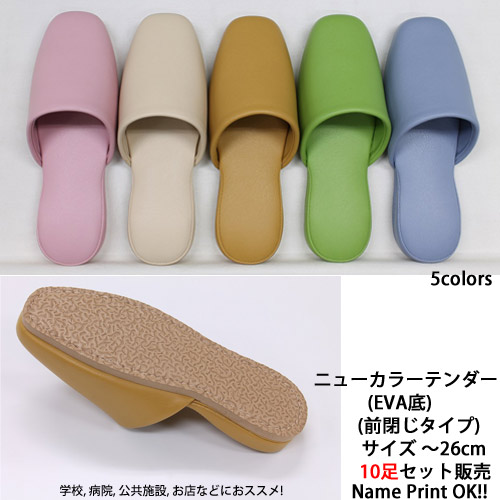 10足セット 業務用 名入れ スリッパ ニューカラーテンダー 抗菌加工 (EVA底)(前閉じタイプ) 26センチ [名入れ対応可]