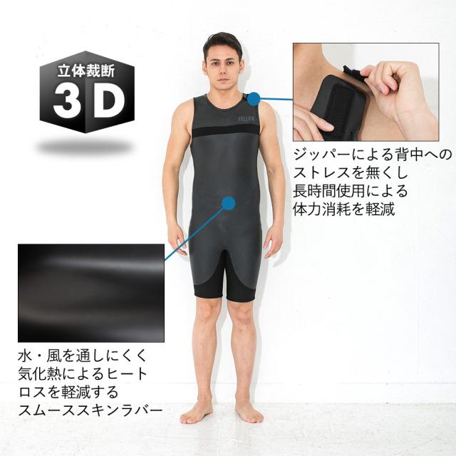 FELLOW ウェットスーツ ショートジョン 2mm メンズ ノンジップ スキン ラバー サーフィン JPSA 日本規格 SUP
