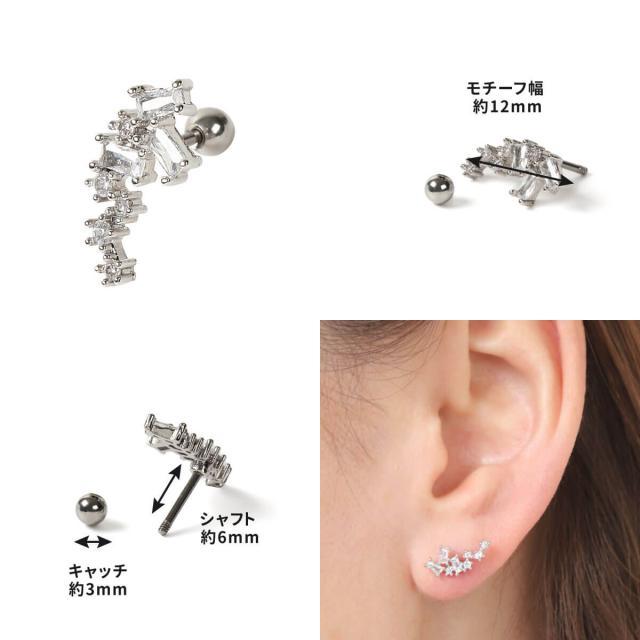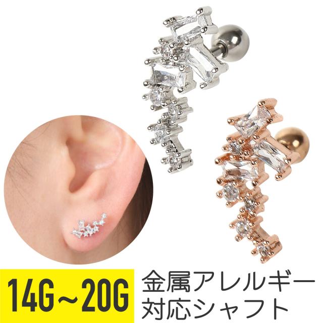 スクエア&スター ジュエル ストレートバーベル 14G 16G 18G 20G サージカルステンレス シルバー ピンクゴールド イヤーロブ ヘリックス トラガス 軟骨ピアス ボディピアス