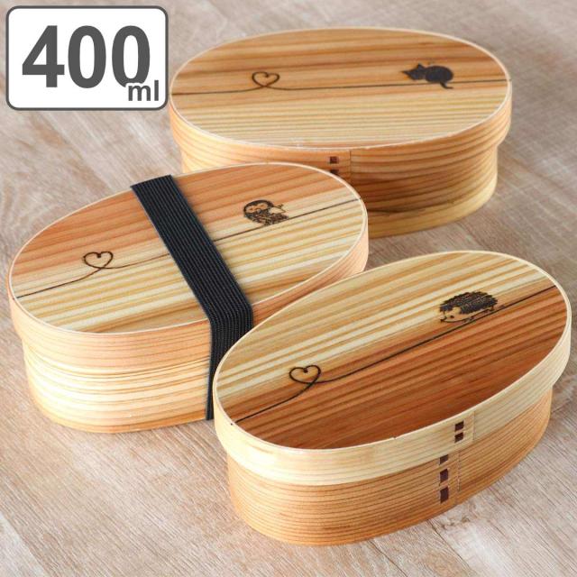 弁当箱 曲げわっぱ 400ml 1段 ウレタン塗装 レーザー彫刻 デザイン 結び 動物 弁当箱 1段( お弁当箱 ランチボックス わっぱ 一段 木製 女子 大人 おしゃれ 小判型 お弁当 弁当 仕切り付き ゴムバンド付き 女性 日本製 )