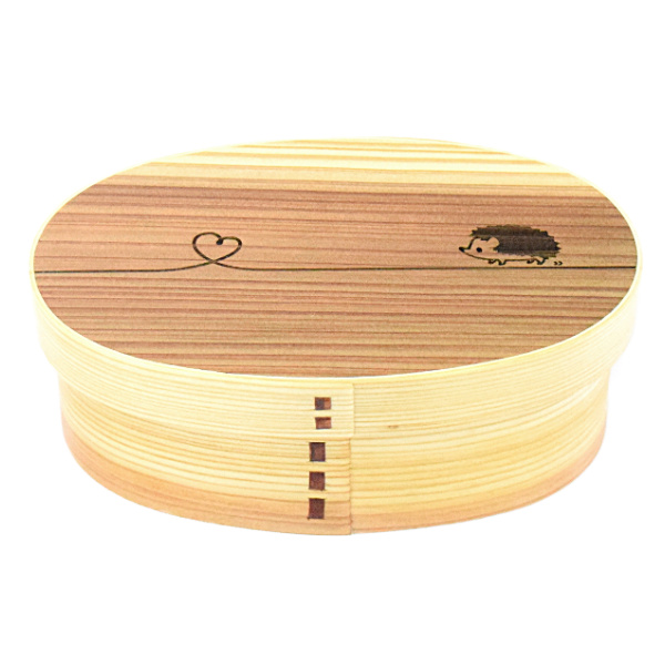 杉材本来の色を貴重としたウレタン塗装に、かわいい動物のレーザー彫刻が施された曲げわっぱ弁当箱です。木製の曲げわっぱと洋風のデザイン彫刻の組み合わせがほっこりとした気持ちにさせてくれます。曲げわっぱ弁当箱は食材が映えるので、見た目も味も他のお弁当箱とは違う特別感を味わえます。