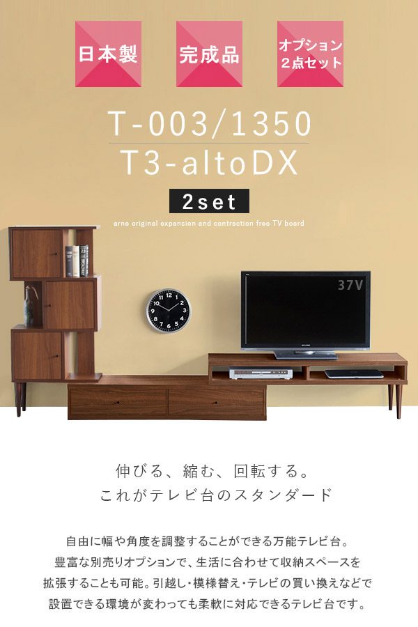 【2点セット】テレビ台 ラック 扉付き キャビネット 伸縮 テレビボード 伸縮テレビ台 扉収納 飾り棚 リビング new T-003/1350モデル T3-altoDX 2点セット ☆