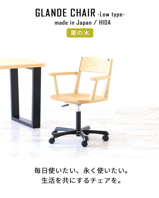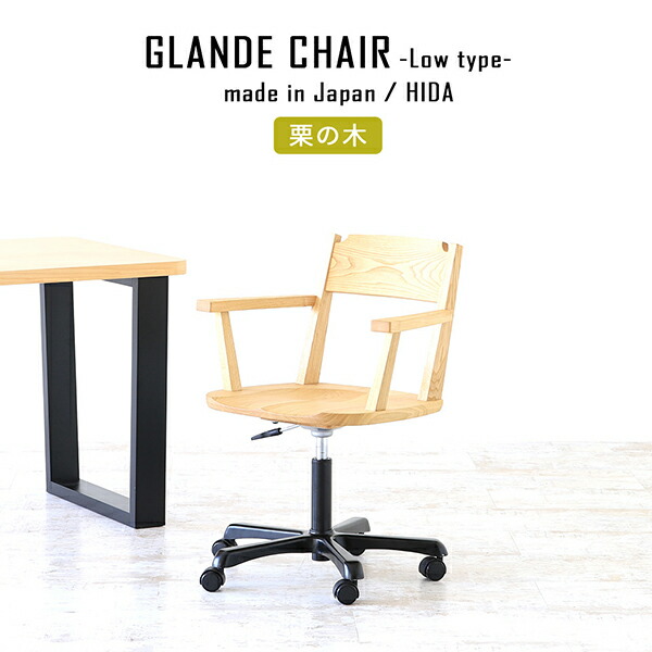デスクチェア パソコンチェアー キャスター付き 昇降 天然木 パソコンチェア 疲れにくい 昇降式 チェア 肘付き Glande chair low 栗の木 在庫処分 セール ●