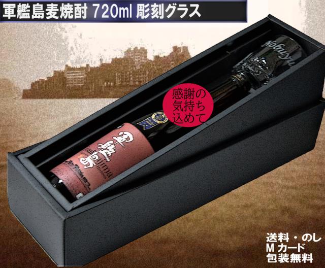 軍艦島麦焼酎スリム720ml・名入彫刻ロックグラスセット 誕生日 卒業 命名 退職 還暦 新築 父の日 母の日 敬老 叙勲 就職 結婚 出産 送別会 記念ほか プレゼント
