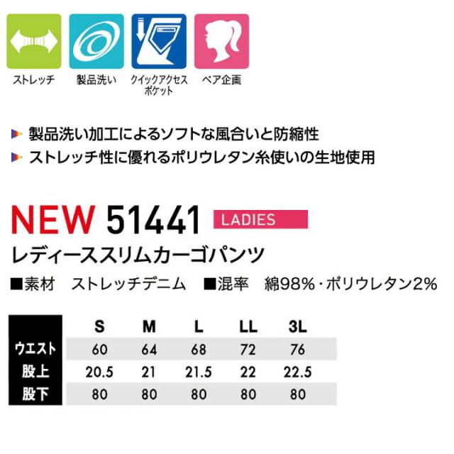 作業着 デニム スリムカーゴパンツ レディース仕様 51441 TSデザイン デニム ストレッチ スリム レディース 女性用 ズボン 作業服 作業着 藤和 TS-DESIGN
