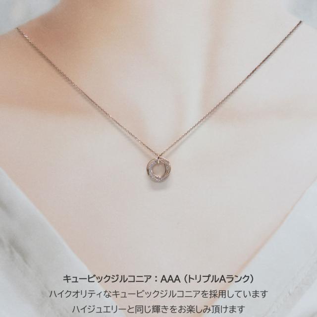 2つのサークルリングと、AAAランクのキュービックジルコニアを敷き詰めたサークルリングを合わせたデザイン。
