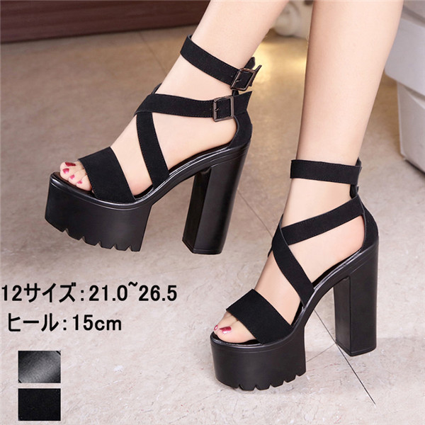 12サイズ サンダル レディース 厚底 太ヒール ベルト 大きいサイズ 厚底サンダル ハイヒール ストーム サンダル ヒール15cm 小さいサイズ 靴 女性 大人 さんだる ブラック 21.0/21.5/22.0/22.5/23.0/23.5/24.0/24.5/25.0/25.5/26.0/26.5 di395d3